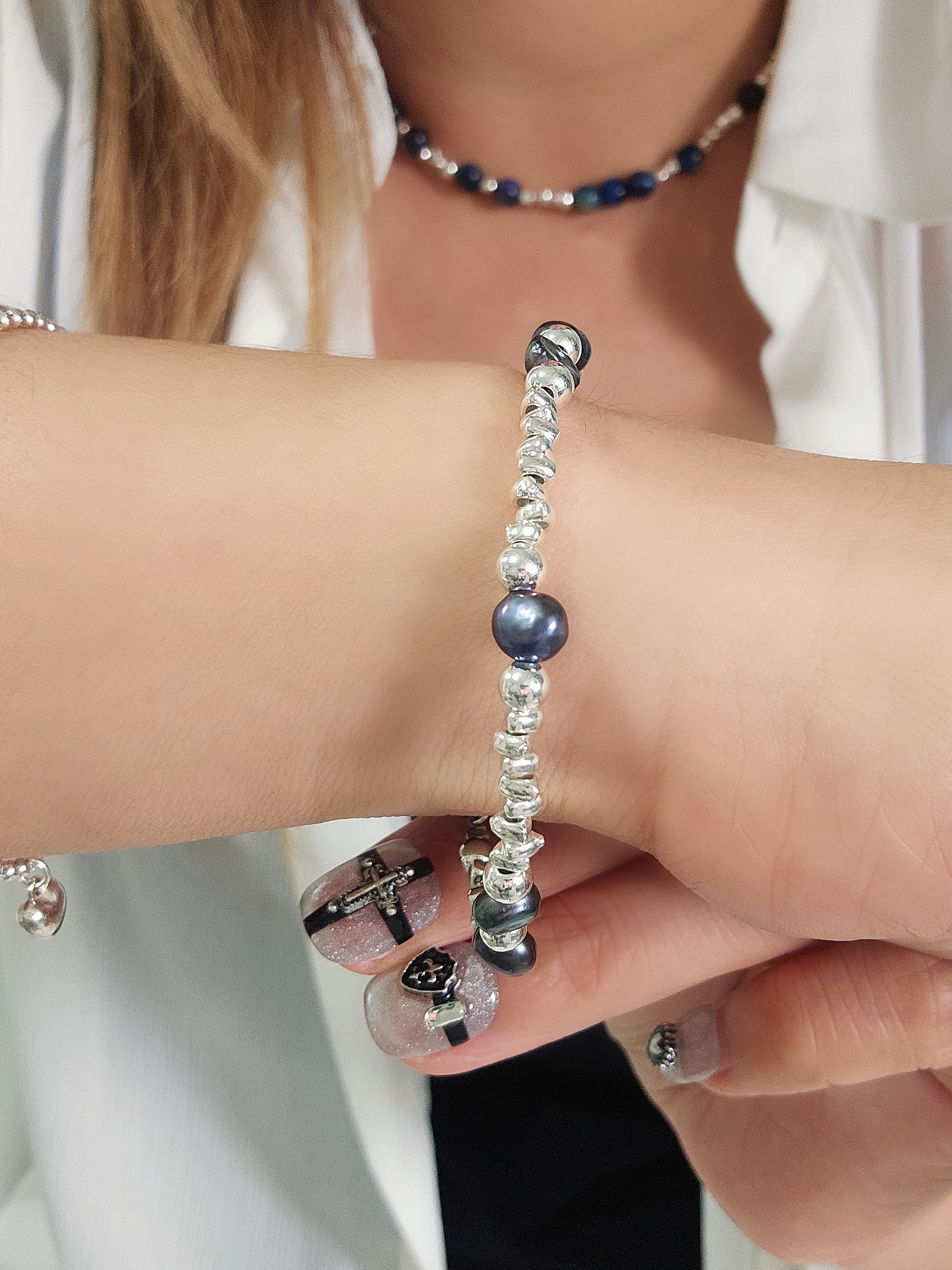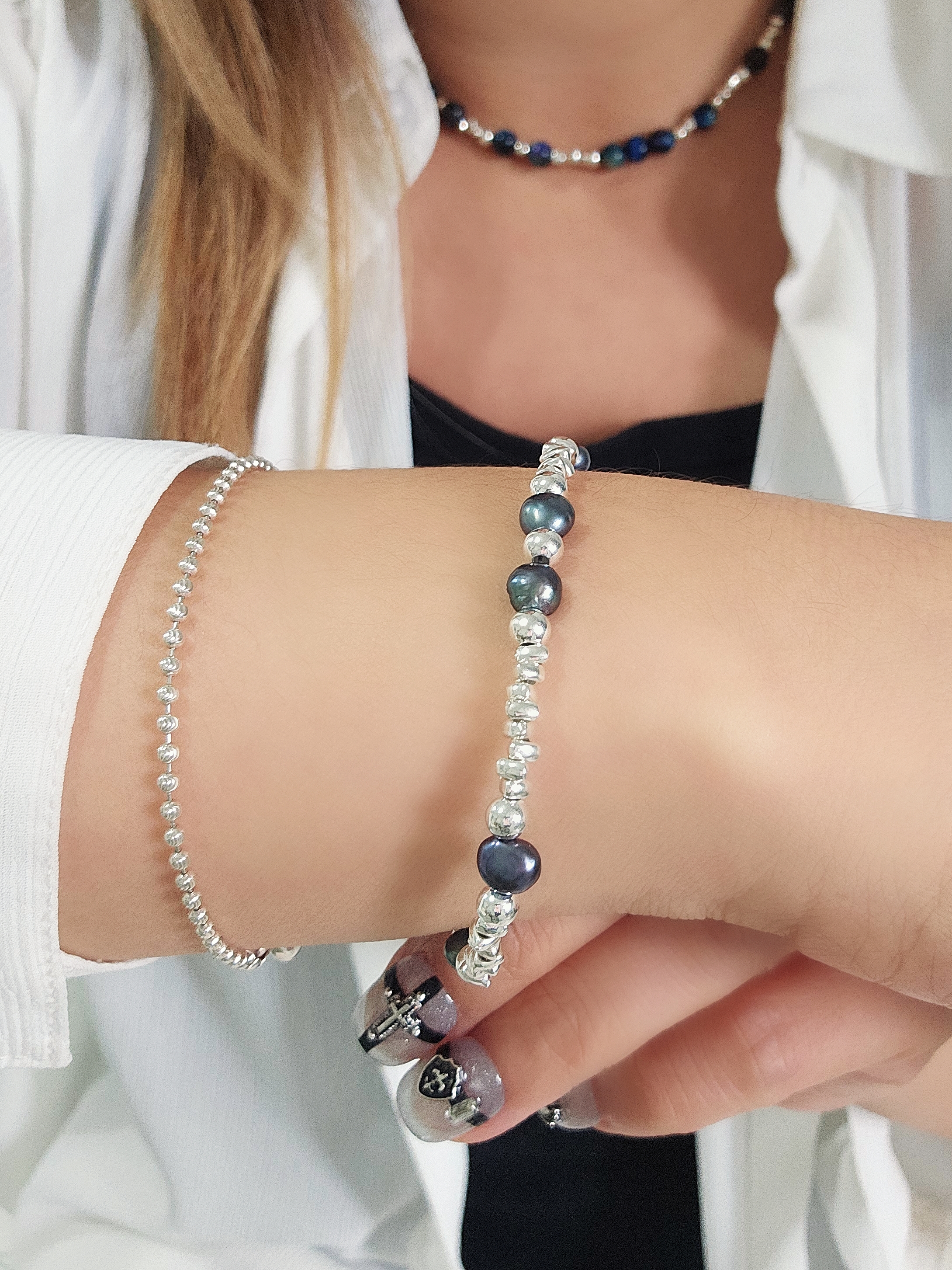 這款手鍊採用精緻的自家設計,以純銀打造,並點綴著4-5mm的天然珍珠。珍珠經過輻照技術改色,呈現出獨特的色澤,為您的腕間增添一抹亮麗。 輻照技術是一種安全可靠的電離物理技術,能夠改變珍珠的顏色,同時保留其天然的質感和光澤。此技術經過嚴格的品質管控,確保輻照改色後的珍珠不會褪色或掉色,讓您安心佩戴,享受持久的光彩。 這款手鍊是我們自家設計,根據手圍定制, 手鍊採用日本鋼絲線,佩戴舒適耐用。 Bracelet SIZE: 16+2.5cm WEIGHT: 5.5g 🔸️S925 🔸️Easy to match 🔸️Hypoallergenic 🔸️Keep Dry For Lasting Shine 〰️What's Included〰️ 1 Chain Bracelet 1 High Quality Sealed Bag 1 High Quality Silver Polishing Cloth ♥️ 尺寸: 16+2.5cm 重量: 5.5g 🔸️S925 🔸️容易配襯 🔸️防敏感 🔸️保持乾燥 持久光澤 〰️包括什麼〰️ 1 手鍊 1 高質密封袋 1 高質抹銀布