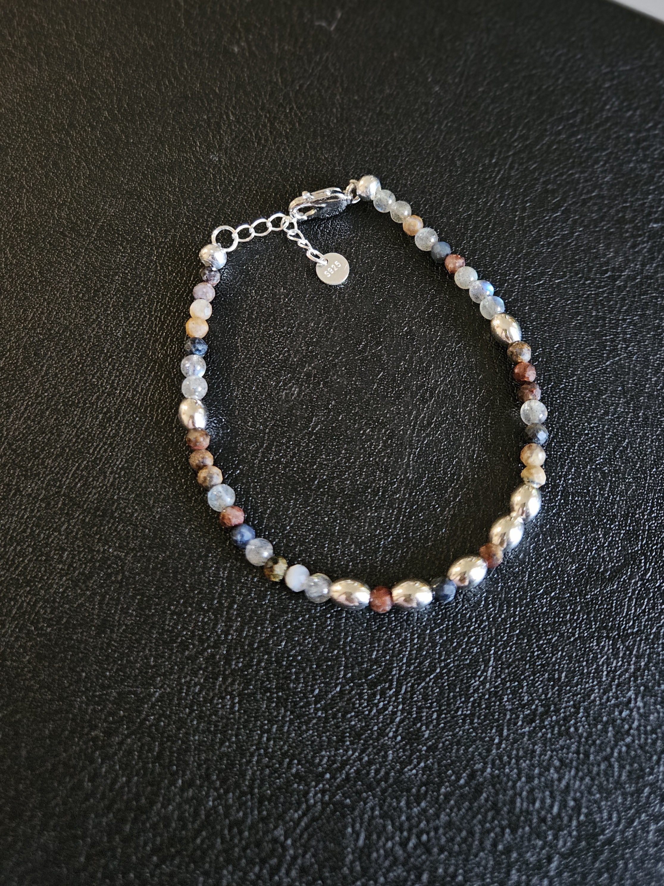 S925 - *MH0032* Multitone Gem Bead Bracelet