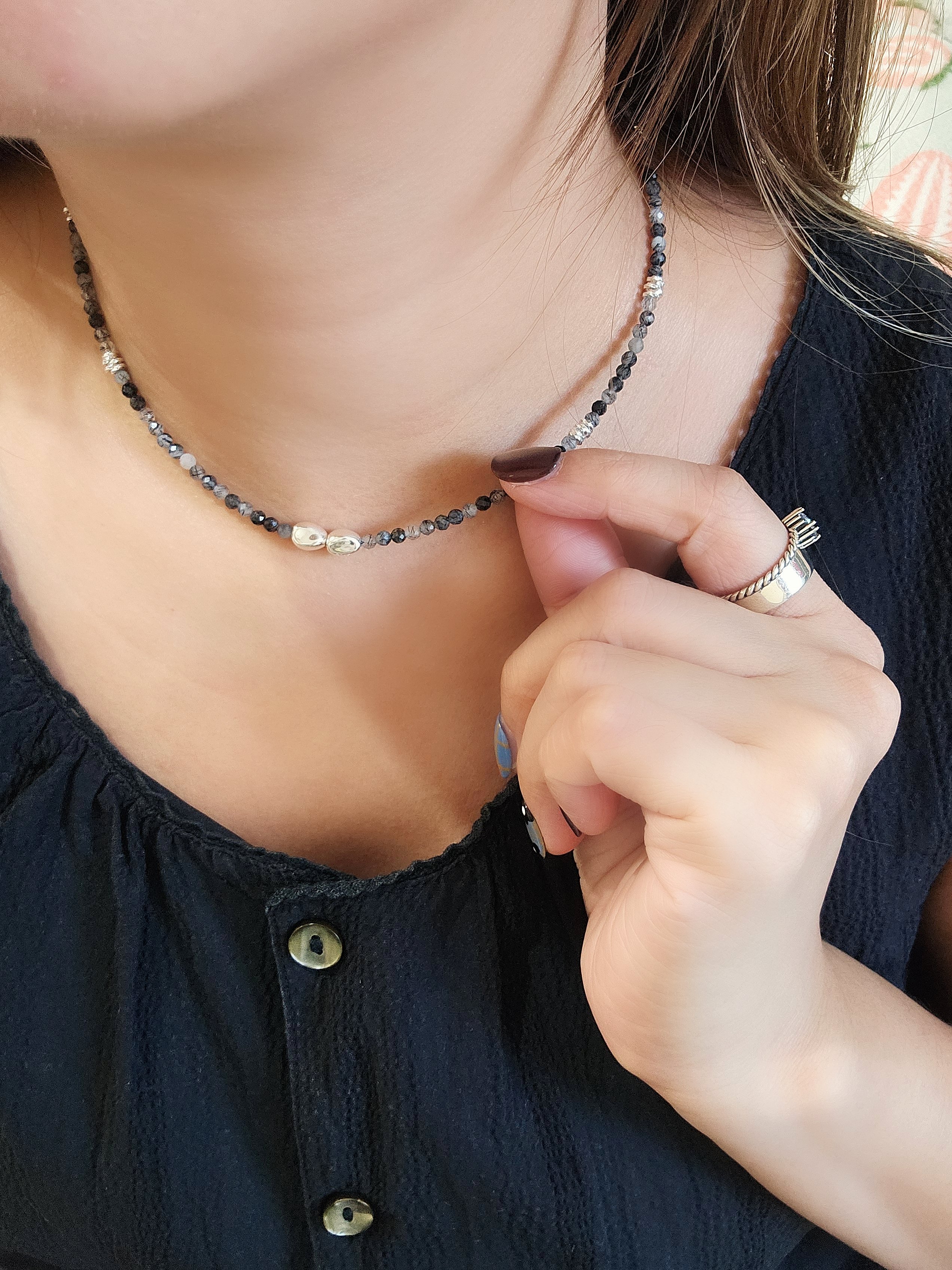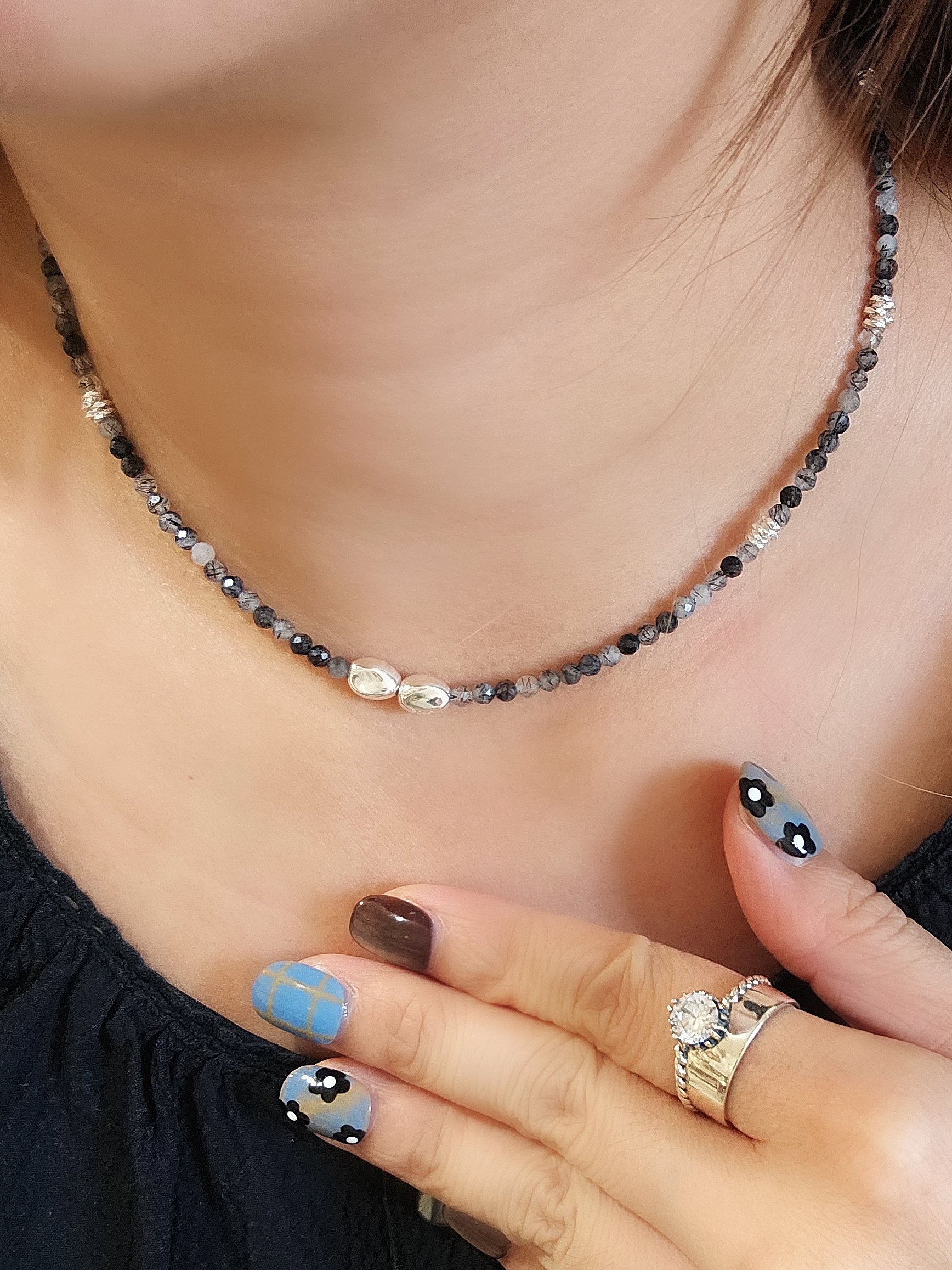 S925 -*MN0011* Black Rutilated Quartz Necklace