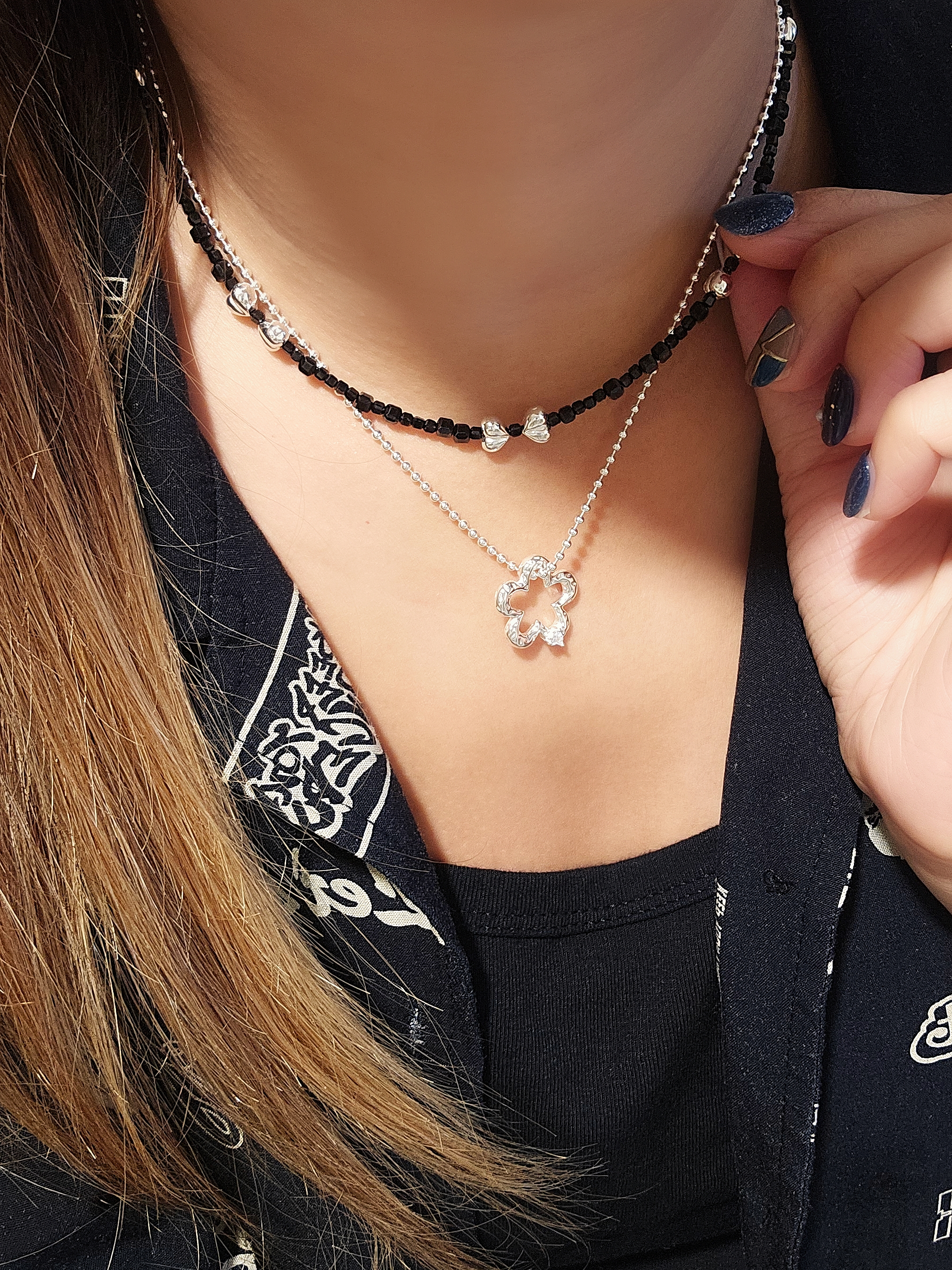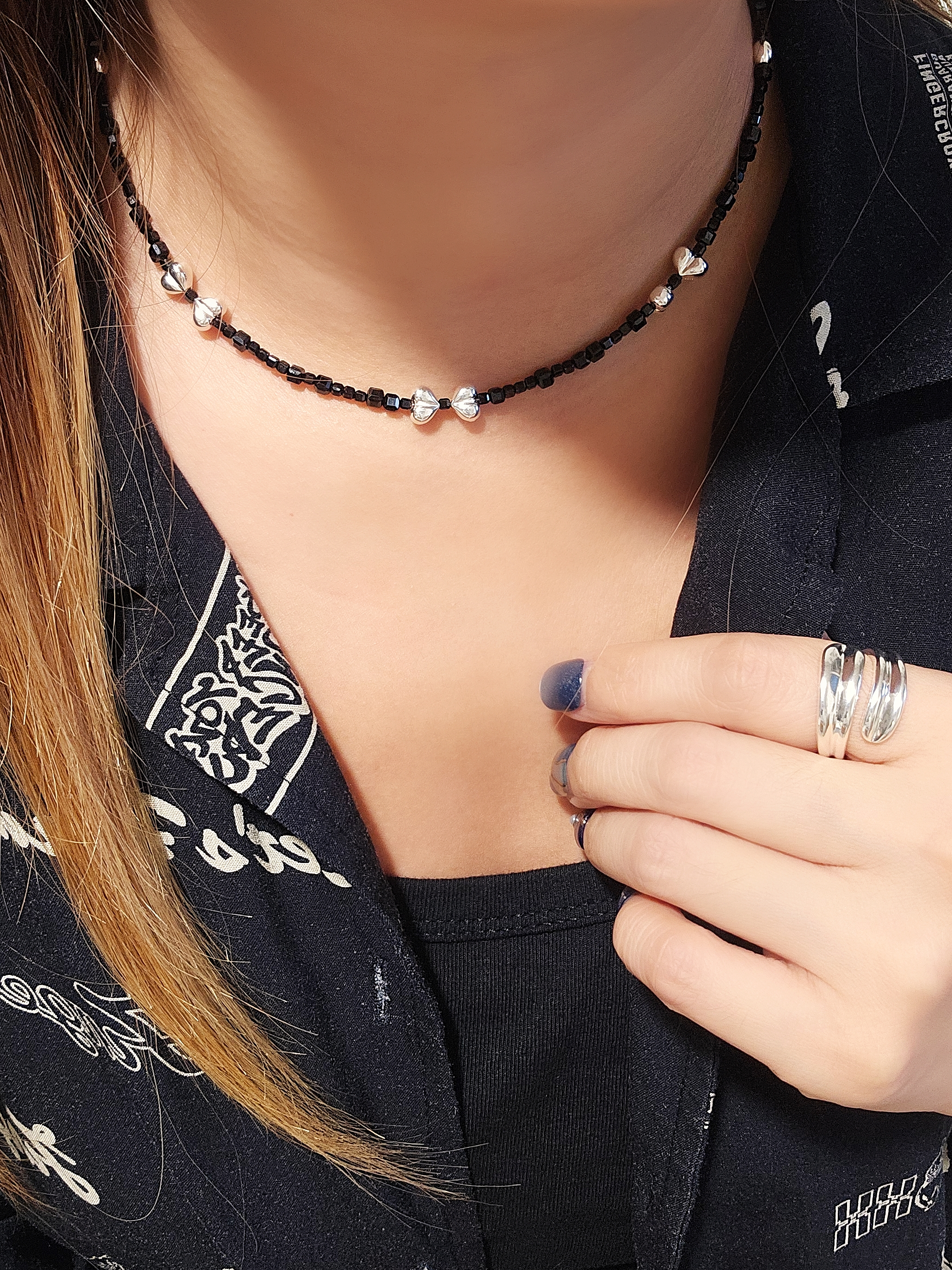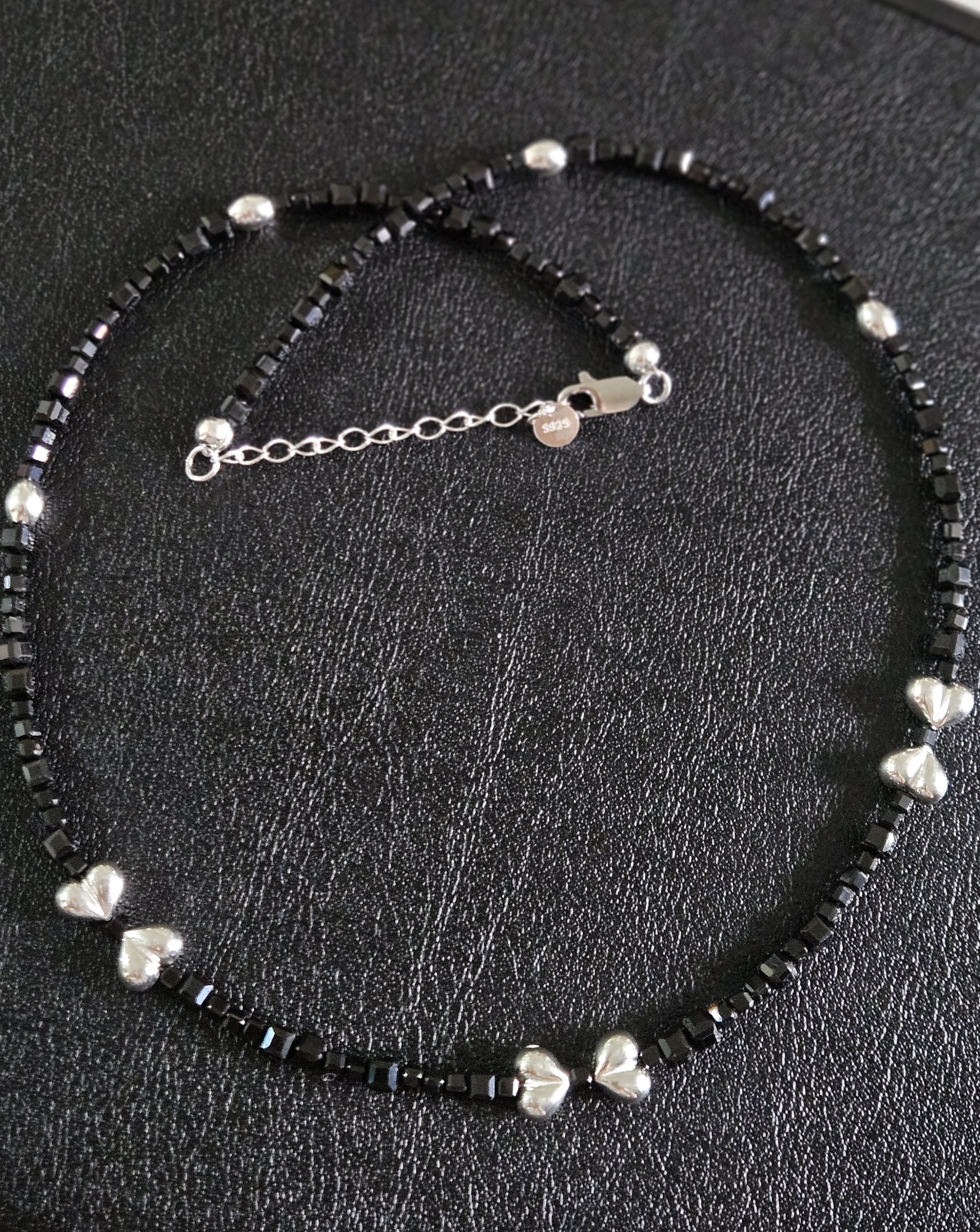 我們自家設計的「黑水晶心語」項鍊,巧妙地將閃耀的大小黑水晶、可愛的心型銀珠與現代感的幾何造型融合在一起,打造出既甜美又前衛的時尚感。 想像一下,項間閃爍著神秘光澤的大小黑水晶,彷彿黑夜中點點星光,在光線下折射出令人著迷的光芒。搭配著精巧可愛的心型銀珠,猶如一顆顆跳動的心,訴說著你的好心情。最特別的是,項鍊採用了方型、橢圓形和心型的多樣幾何設計,不同形狀的碰撞,創造出意想不到的視覺效果,讓整體造型更具層次感,也更顯獨特個性。 這款項鍊不僅僅是美麗的飾品,更是展現你個人風格的完美載體。無論是搭配休閒的牛仔褲和T恤,或是優雅的洋裝,都能輕鬆駕馭,為你的整體造型加分。而且,為了確保你的佩戴舒適度和項鍊的耐用性,我們特別選用了高品質的日本鋼絲線,堅韌不易斷裂,讓你可以安心佩戴,盡情享受時尚樂趣。 Necklace SIZE: 40+4cm WEIGHT: 9.2g 🔸️S925 🔸️Can be stacked with necklace 🔸️Hypoallergenic 🔸️Keep Dry For Lasting Shine 〰️What's Included〰️ 1 Necklace 1 High Quality Sealed Bag 1 High Quality Silver Polishing Cloth ♥️ 尺寸: 40+4cm 重量: 9.2g 🔸️S925 🔸️可與其他項鍊疊戴營造層次感 🔸️防敏感 🔸️保持乾燥 持久光澤 〰️包括什麼〰️ 1 項鍊 1 高質密封袋 1 高質抹銀布
