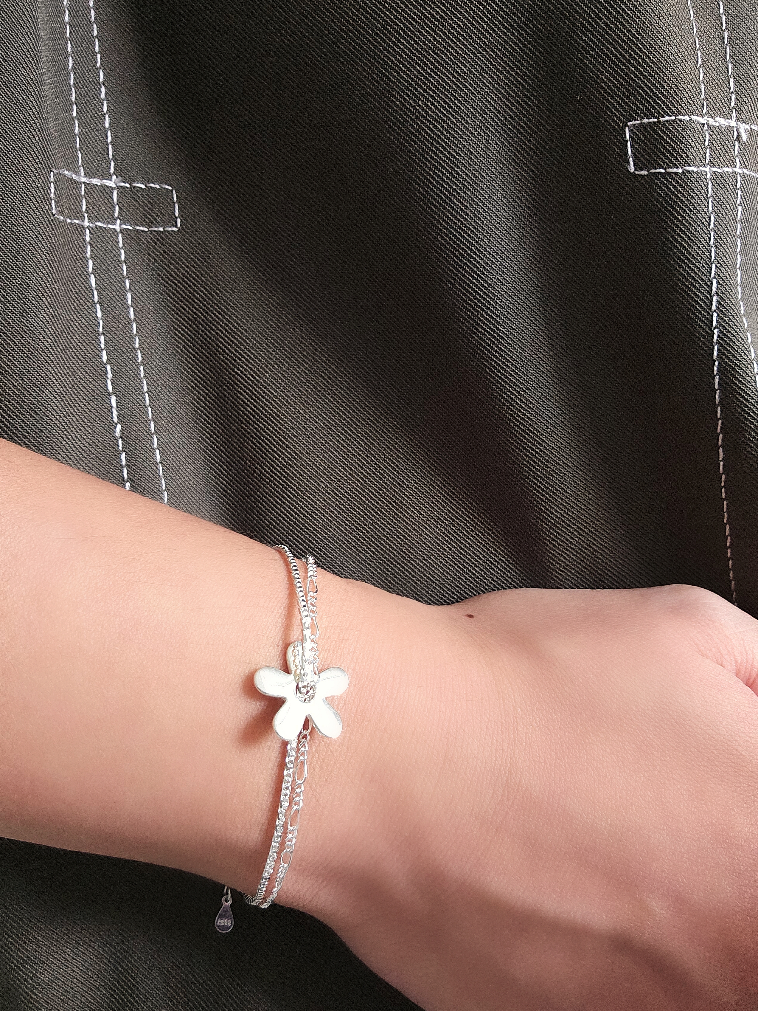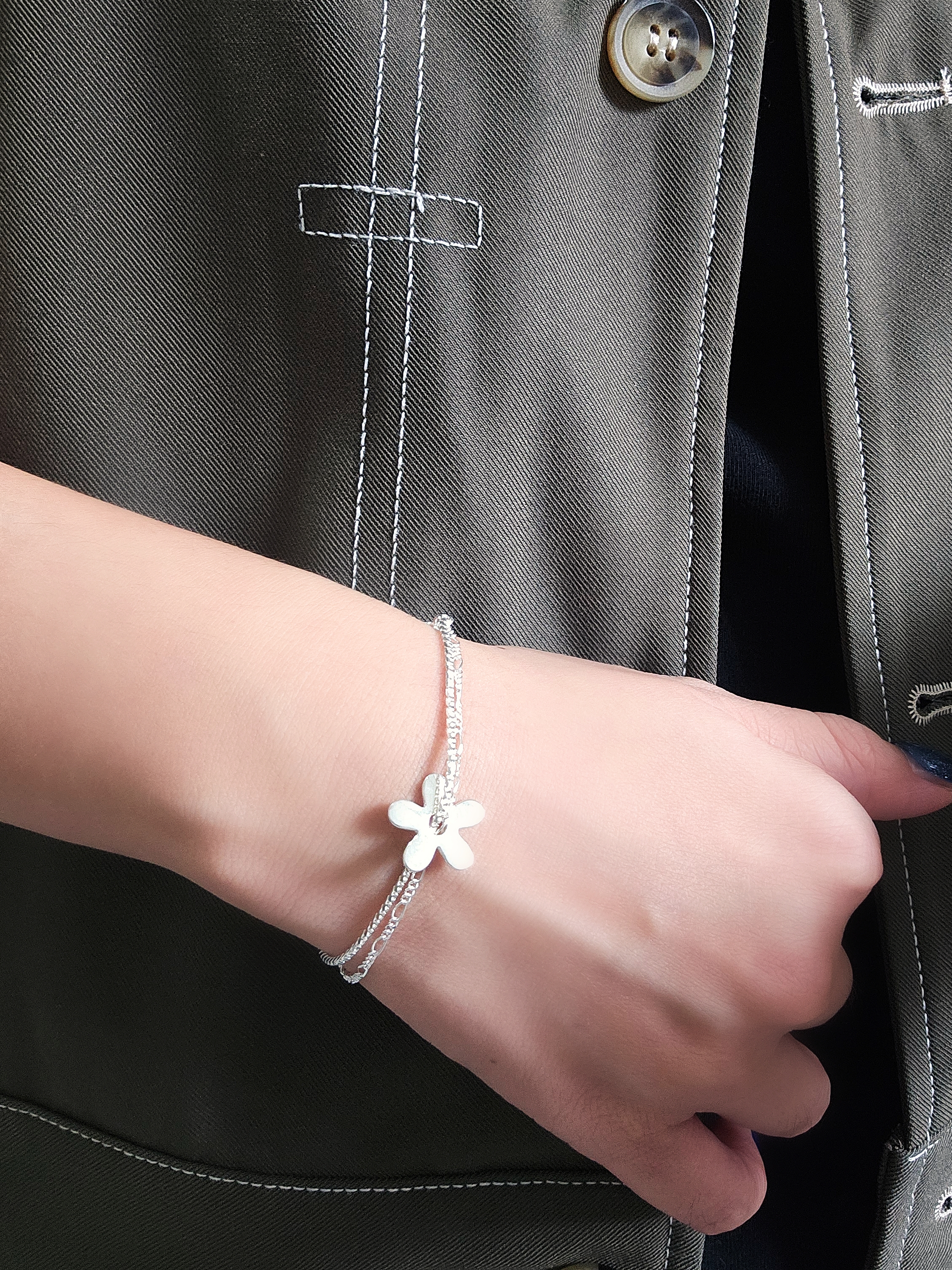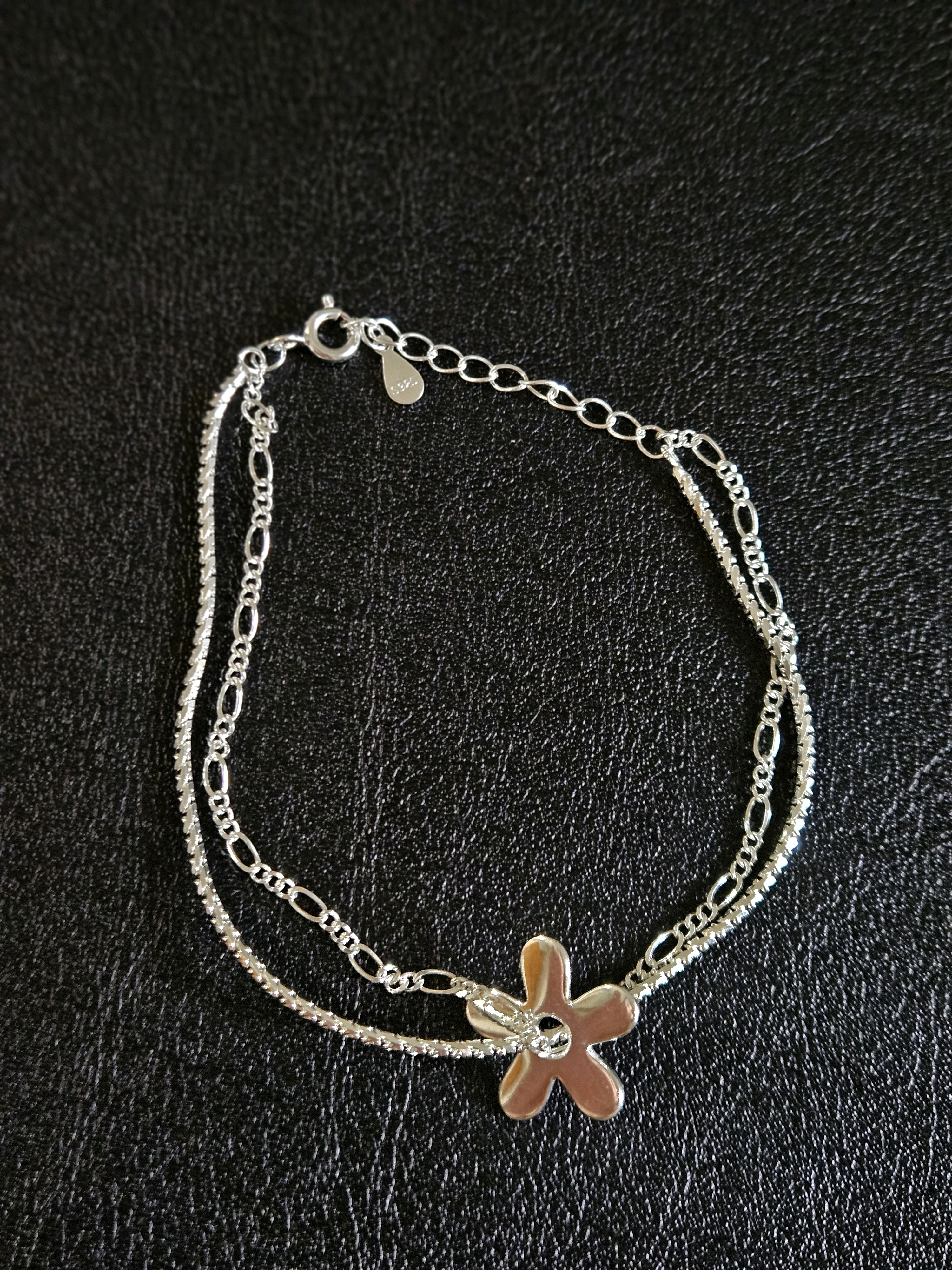 這款雙層純銀手鍊設計精緻,結合了多條鏈條,並有精緻的花形吊飾。這款手鍊不僅展現了工藝的細膩,更為你的造型增添了一份優雅與魅力。無論是日常佩戴還是出席特別場合,都能讓你成為眾人注目的焦點。 Chain Bracelet SIZE: 16+3cm WEIGHT: 3.5g 🔸️S925 🔸️Easy to match 🔸️Hypoallergenic 🔸️Keep Dry For Lasting Shine 〰️What's Included〰️ 1 Chain Bracelet 1 High Quality Sealed Bag 1 High Quality Silver Polishing Cloth ♥️ 尺寸: 16+3cm 重量: 3.5g 🔸️S925 🔸️容易配襯 🔸️防敏感 🔸️保持乾燥 持久光澤 〰️包括什麼〰️ 1 手鍊 1 高質密封袋 1 高質抹銀布
