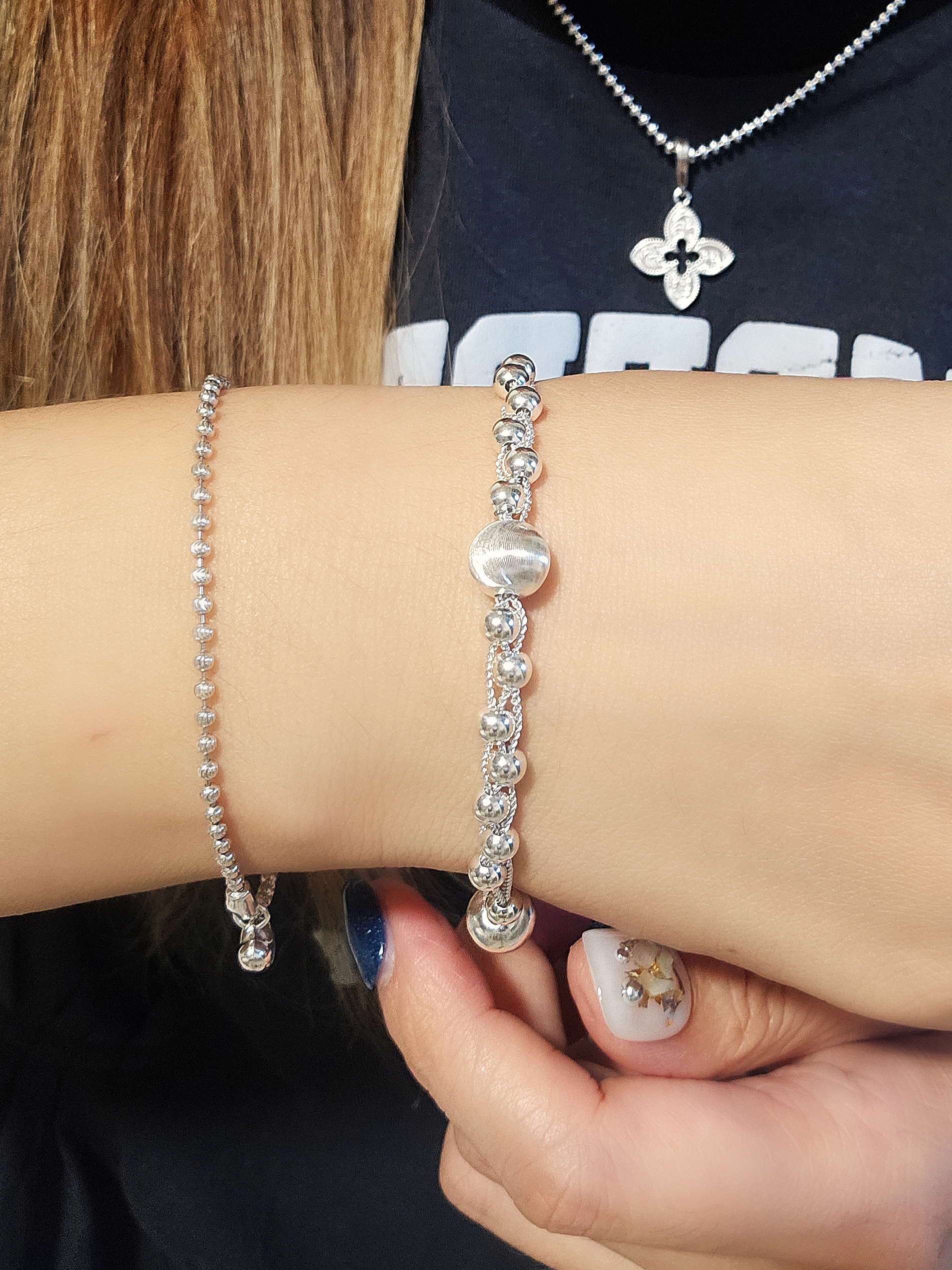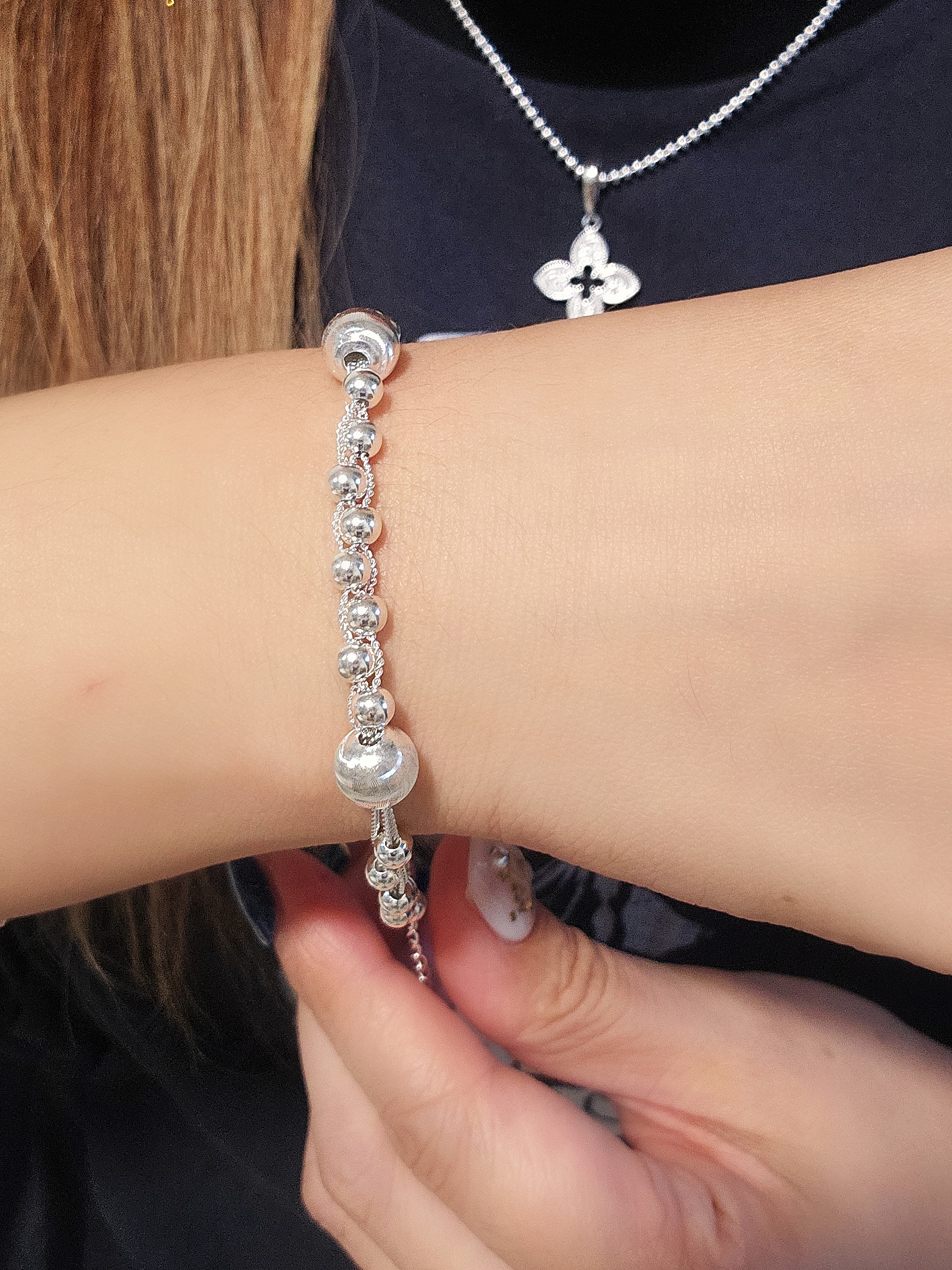這款純銀貓眼珠多層次手鍊,將輕奢質感與可愛氣息完美融合,為您的手腕增添一抹閃耀的光彩。以精湛工藝打造,這不僅僅是一條手鍊,更是一種生活品味的展現。 多層次的設計是這款手鍊的一大亮點。巧妙地將不同粗細、長短的銀鏈層疊組合,營造出豐富的視覺效果,讓您的手腕不再單調。無論是單獨佩戴,還是與其他手鍊疊戴,都能輕鬆打造出獨特的個人風格。 這款手鍊輕盈舒適,日常佩戴毫無負擔,無論是搭配休閒裝扮,還是優雅的晚禮服,都能完美駕馭。它不僅是您提升魅力的時尚單品,也是一份表達心意的理想禮物。送給親友、愛人,讓他們感受到您獨特的品味與真摯的情感。 Chain Bracelet SIZE: 18+3cm WEIGHT: 5.7g 🔸️S925 🔸️Easy to match 🔸️Hypoallergenic 🔸️Keep Dry For Lasting Shine 〰️What's Included〰️ 1 Chain Bracelet 1 High Quality Sealed Bag 1 High Quality Silver Polishing Cloth ♥️ 尺寸: 18+3cm 重量: 5.7g 🔸️S925 🔸️容易配襯 🔸️防敏感 🔸️保持乾燥 持久光澤 〰️包括什麼〰️ 1 手鍊 1 高質密封袋 1 高質抹銀布