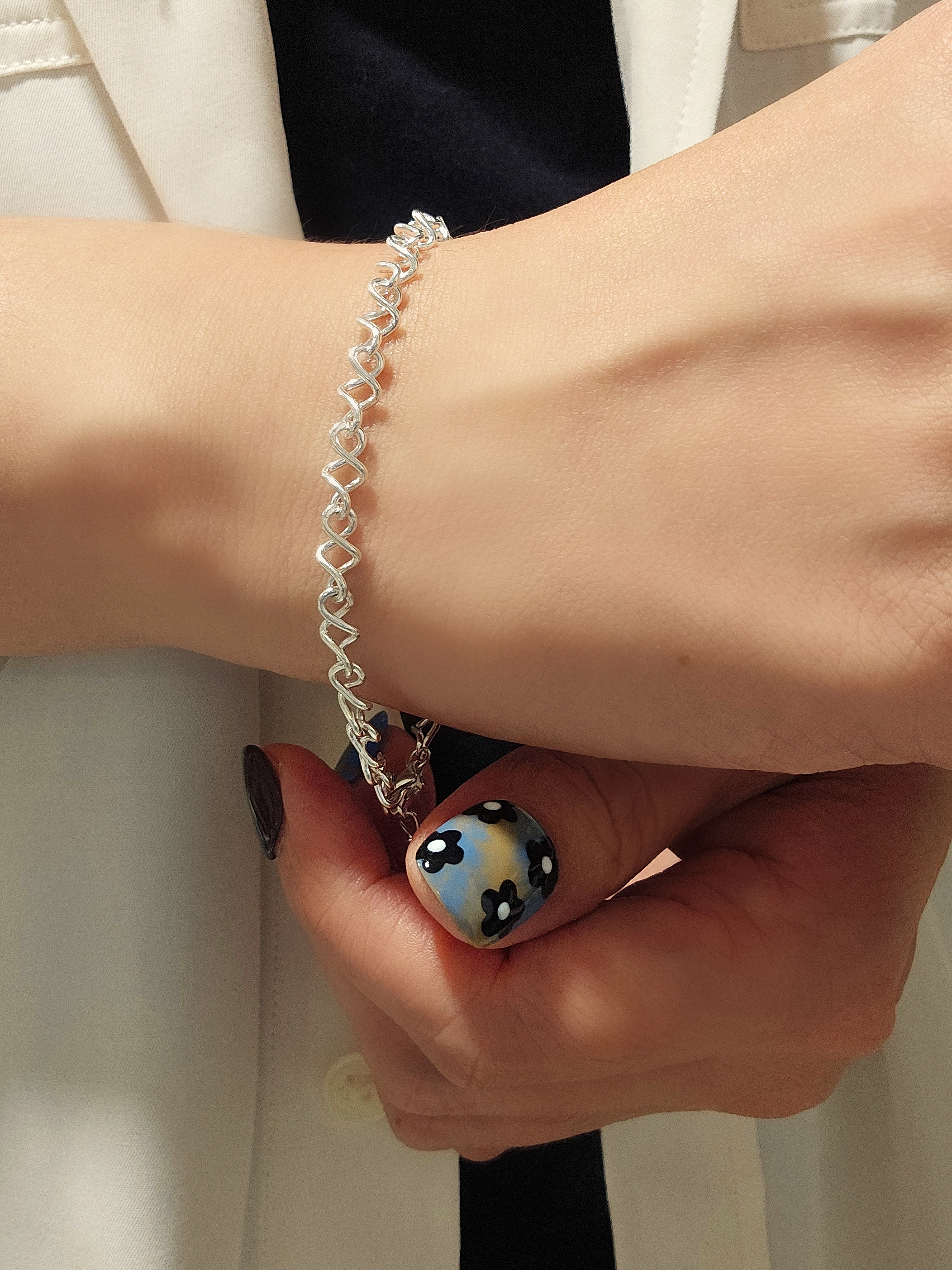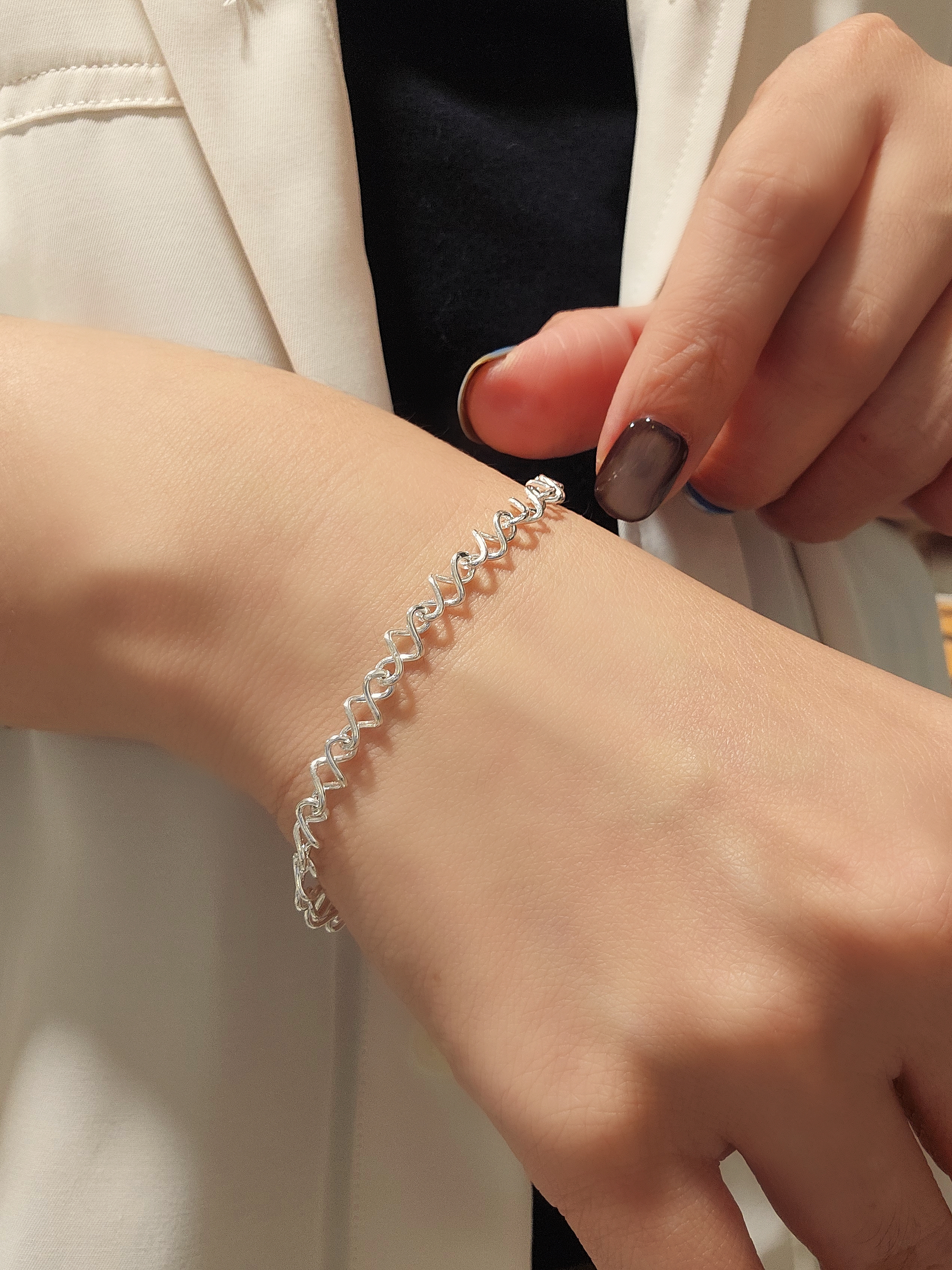 這款手鍊採用精緻的立體幾何設計,以扭線造型呈現,擺脫了傳統手鍊的單調,營造出豐富的視覺層次。不規則的線條設計更增添了一份隨性與自由,讓你的造型更具個人特色。 採用高品質的S925純銀打造,不僅光澤度極佳,還具有良好的抗氧化性能,不易變黑。你可以放心地佩戴,享受它長久的光彩。手鍊的設計注重佩戴的舒適度,即使長時間佩戴也不會感到不適。 Bracelet SIZE: 18+3cm WEIGHT: 4.5g 🔸️S925 🔸️Easy to match 🔸️Hypoallergenic 🔸️Keep Dry For Lasting Shine 〰️What's Included〰️ 1 Chain Bracelet 1 High Quality Sealed Bag 1 High Quality Silver Polishing Cloth ♥️ 尺寸: 18+3cm 重量: 4.5g 🔸️S925 🔸️容易配襯 🔸️防敏感 🔸️保持乾燥 持久光澤 〰️包括什麼〰️ 1 手鍊 1 高質密封袋 1 高質抹銀布