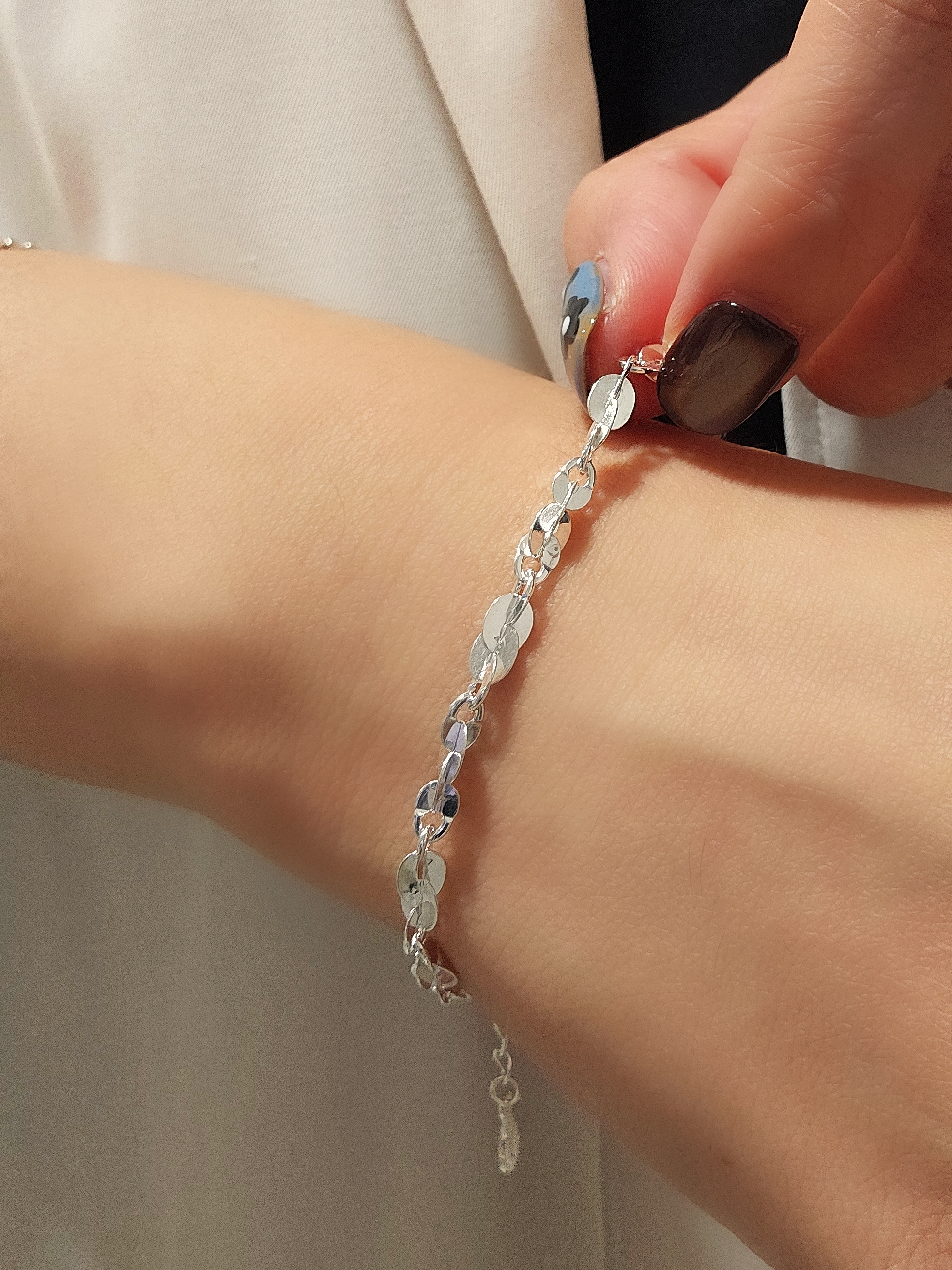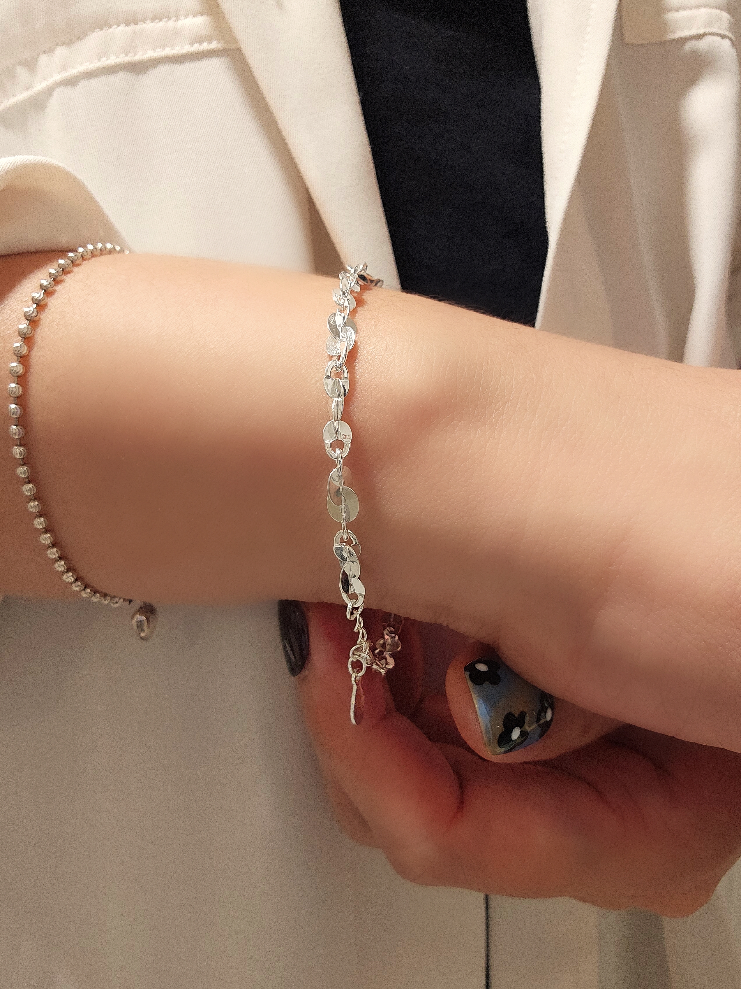 一款將現代幾何美學與經典銀飾工藝完美結合的絕佳單品。這款手鍊不僅僅是一件飾品,更是一種對風格與個性的細膩表達。 想像一下,細膩的純銀閃耀著迷人的光澤,立體設計的銀片巧妙地串聯在一起,隨著您的每一個動作,反射出多變的光線。這就是這款手鍊的魅力所在! 獨特的幾何造型,靈感源自簡約主義,使得這款手鍊既時尚又百搭。它的反光設計更是讓人愛不釋手,在光線下呈現出令人驚豔的閃爍效果,讓您成為眾人矚目的焦點。 Bracelet SIZE: 16+3cm WEIGHT: 3g 🔸️S925 🔸️Easy to match 🔸️Hypoallergenic 🔸️Keep Dry For Lasting Shine 〰️What's Included〰️ 1 Chain Bracelet 1 High Quality Sealed Bag 1 High Quality Silver Polishing Cloth ♥️ 尺寸: 16+3cm 重量: 3g 🔸️S925 🔸️容易配襯 🔸️防敏感 🔸️保持乾燥 持久光澤 〰️包括什麼〰️ 1 手鍊 1 高質密封袋 1 高質抹銀布