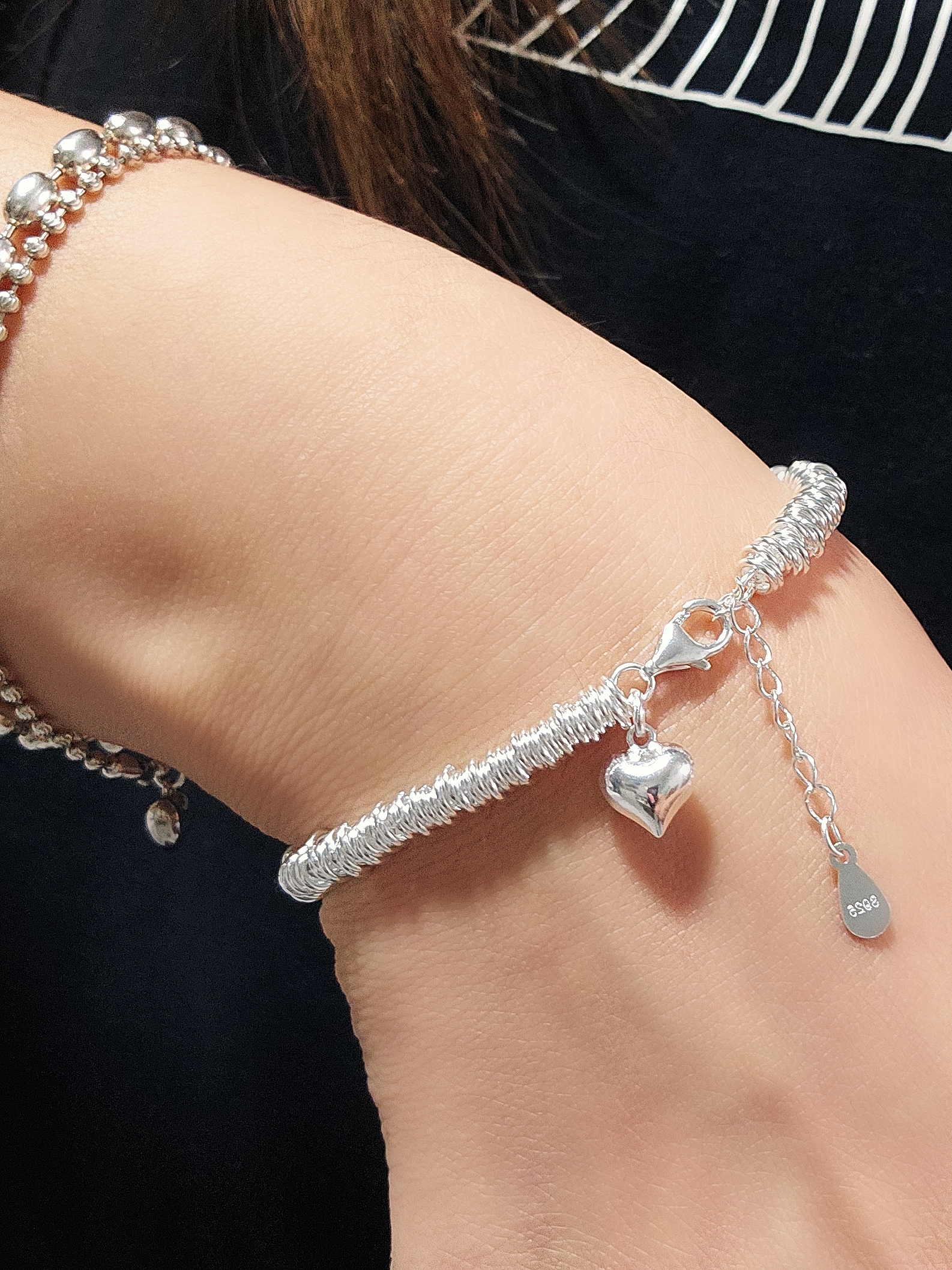 這款純銀心型吊飾手鍊,將經典浪漫與精緻工藝完美結合,絕對是您日常穿搭中最亮眼、也最具溫度的點綴!它不僅僅是一條手鍊,更是您表達情感、展現個性的最佳選擇。