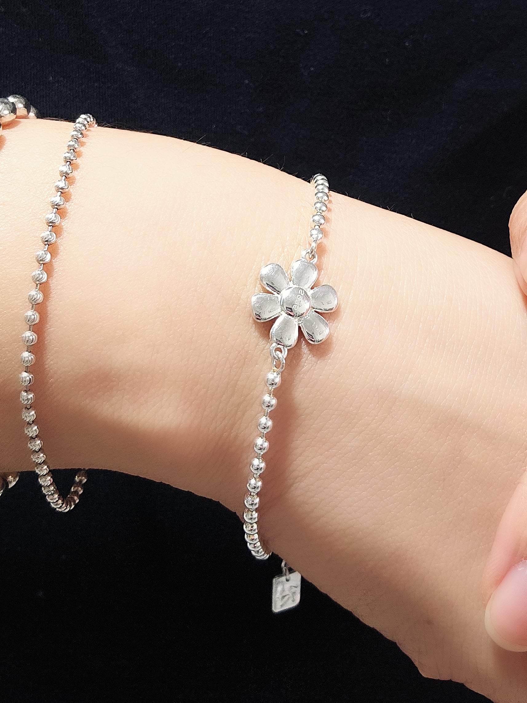 這款手鍊不僅適合日常佩戴,無論是搭配休閒服裝還是正式場合的禮服,都能為您的造型增添一抹亮色。同時,純銀材質具有良好的保養性,只要定期擦拭,就能保持長久的光澤。送給自己或親友,都是一份充滿心意的禮物,讓彼此都能感受到這份來自花朵的祝福。