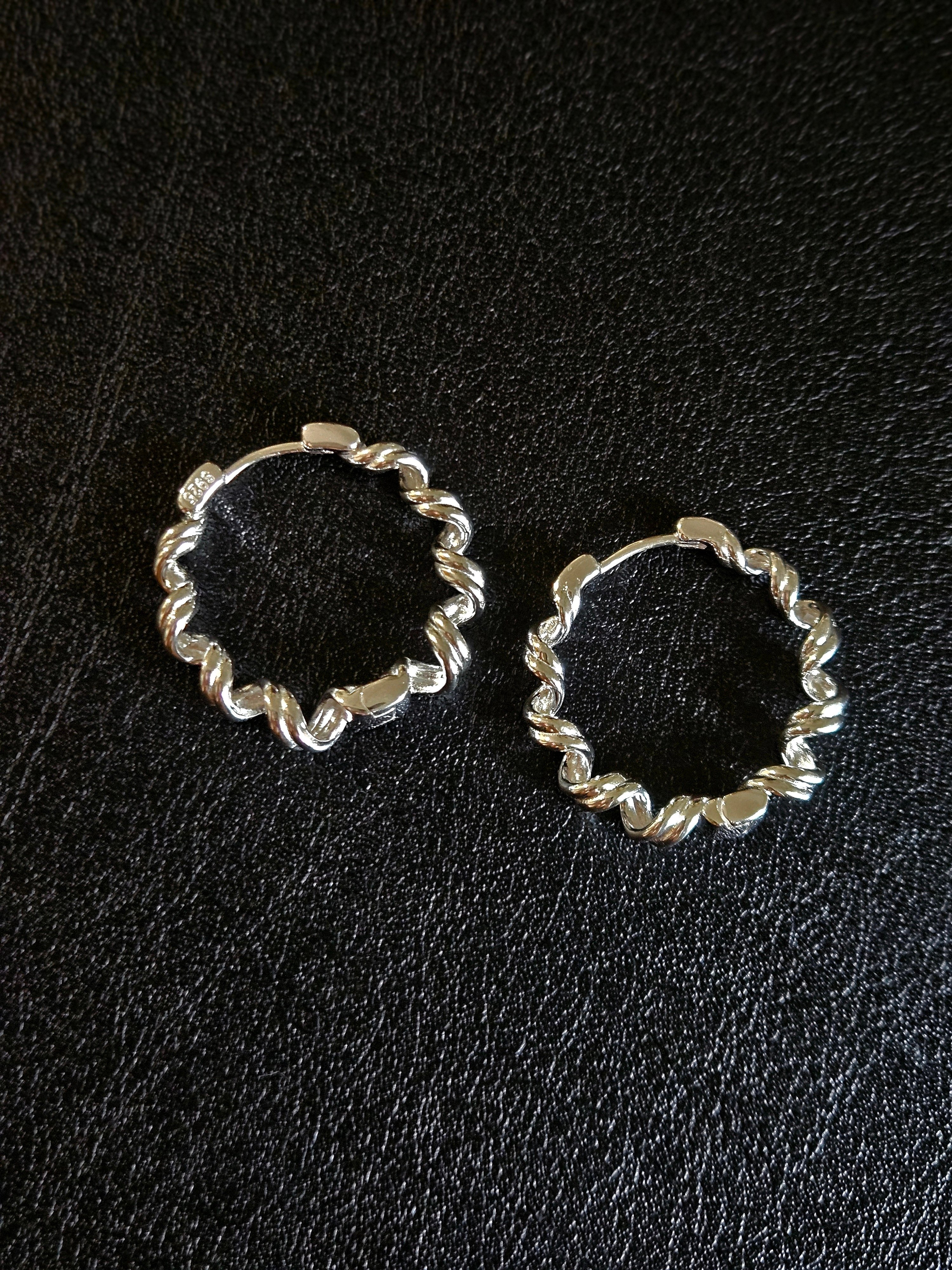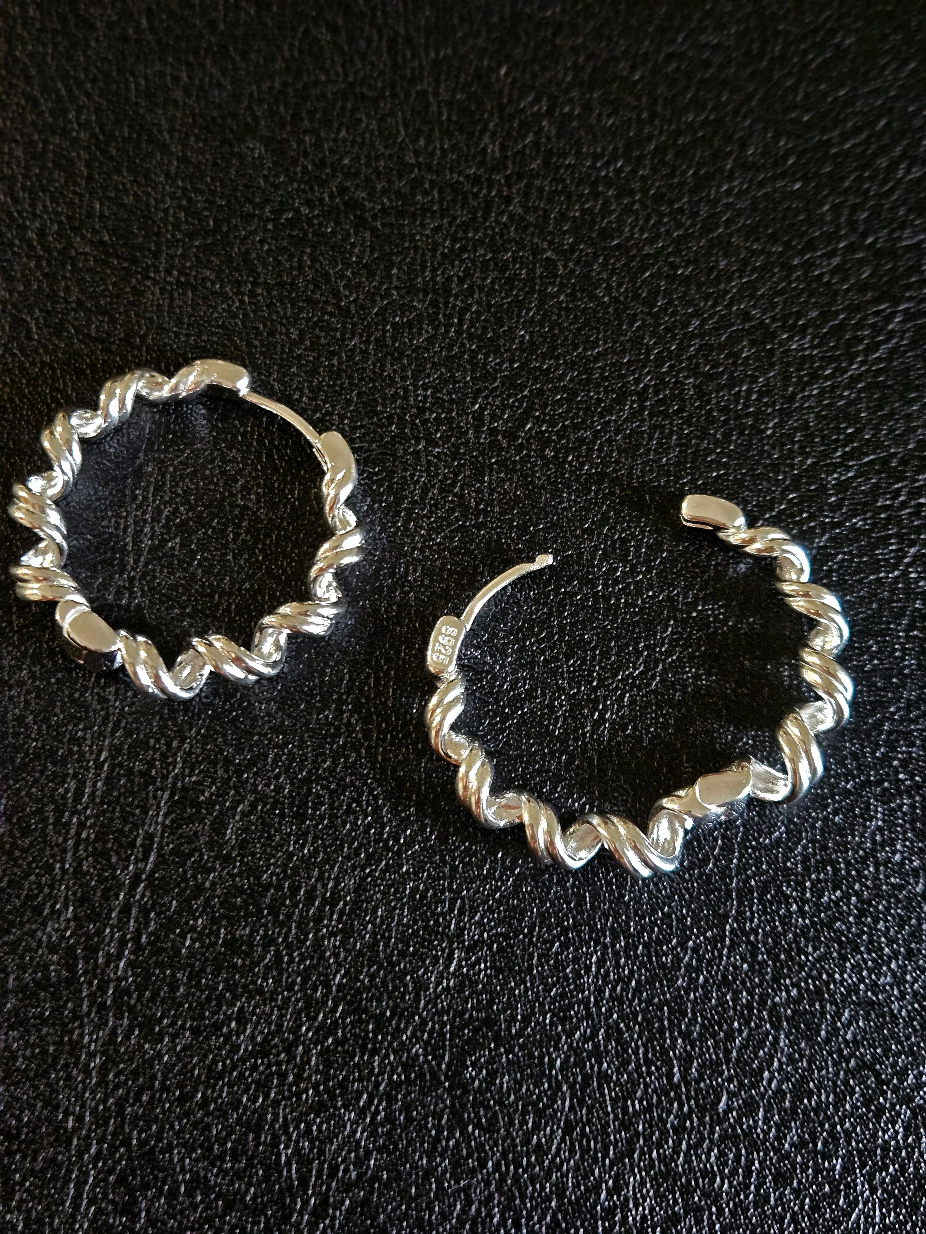 S925 - EE0277 Twisted Silver Hoop Earrings