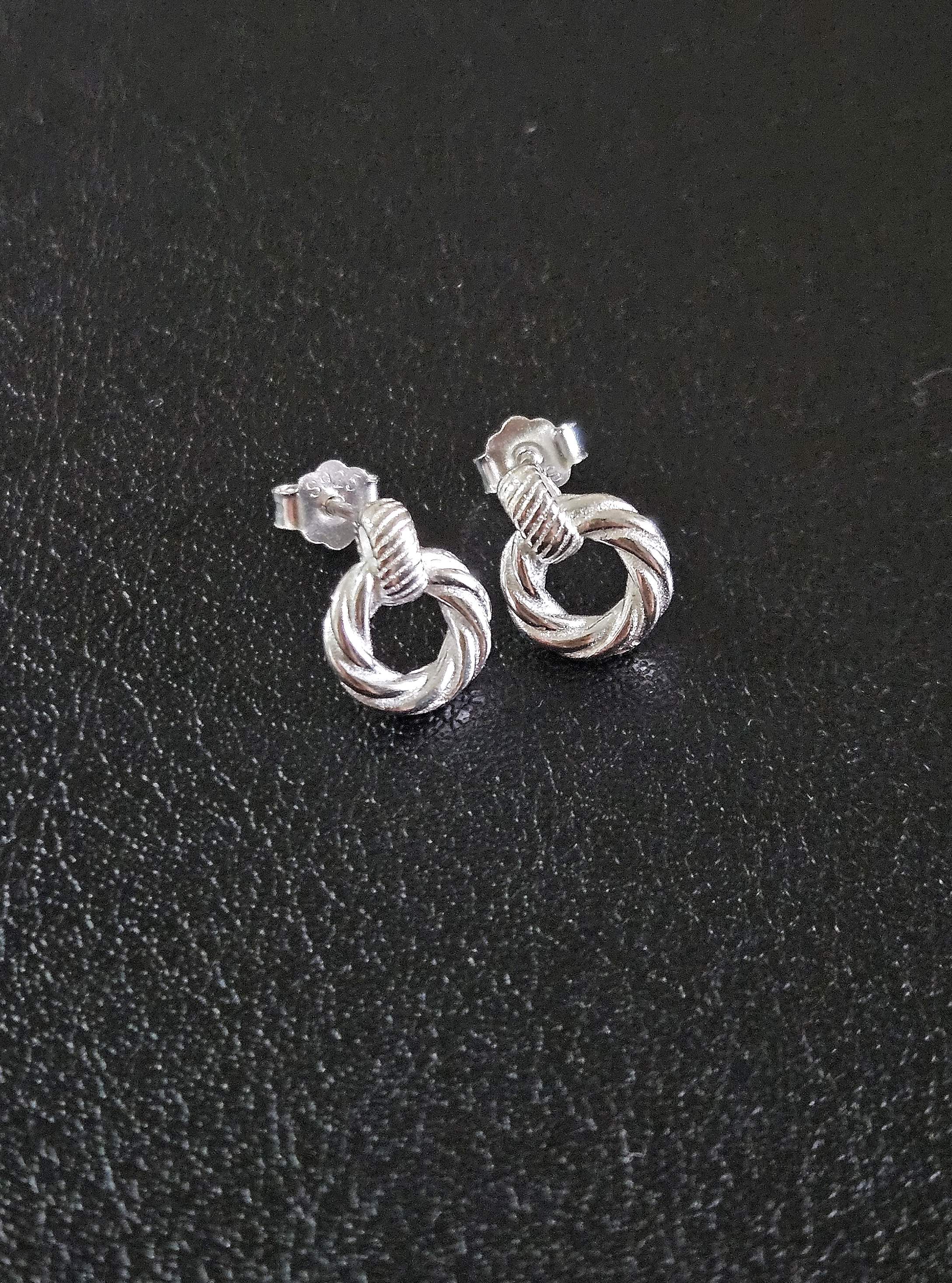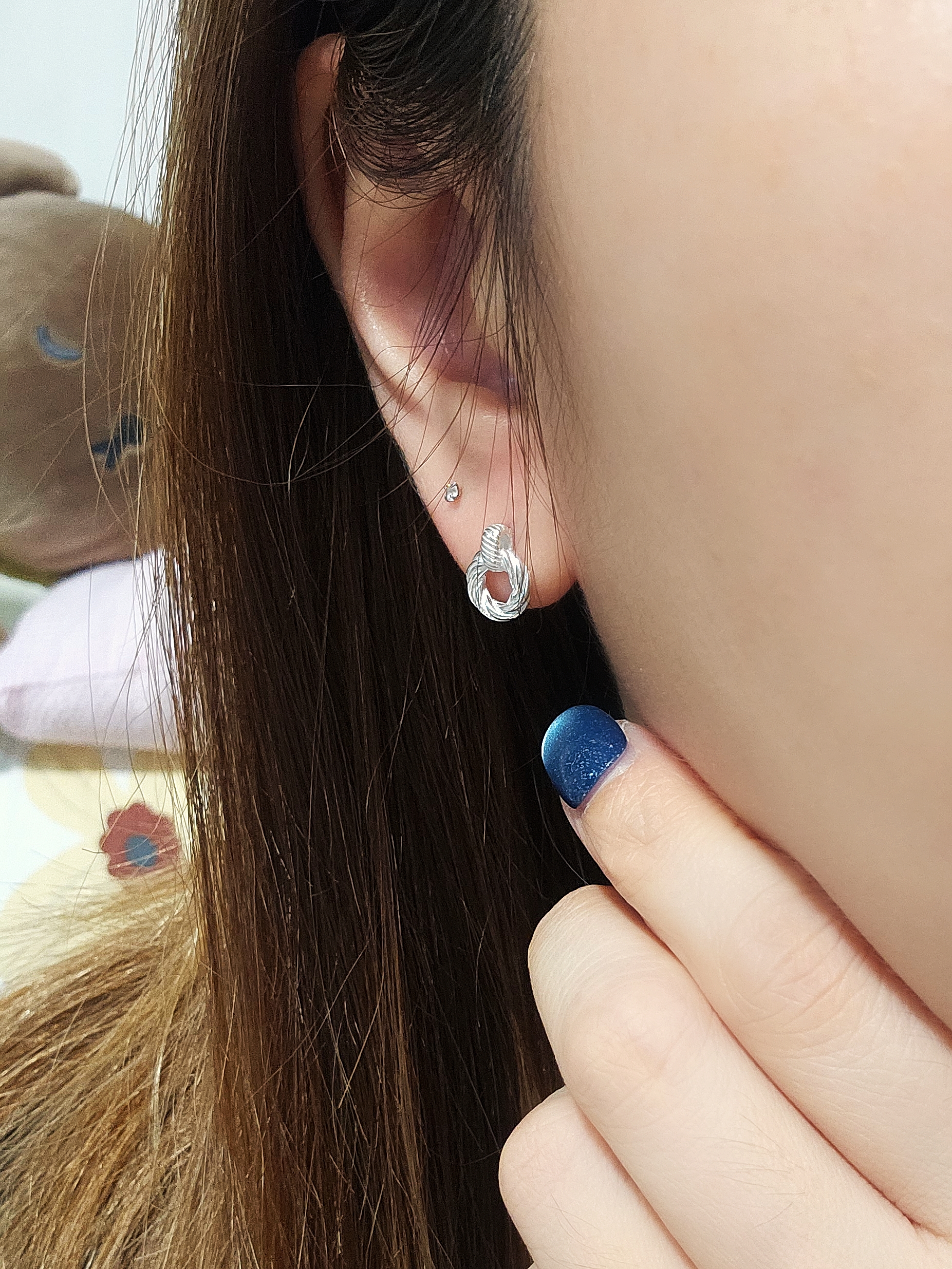 這款純銀耳環設計精緻,圓形環狀搭配扭紋圖案,展現獨特的時尚感。輕巧的設計使其佩戴舒適,且適合各種場合。