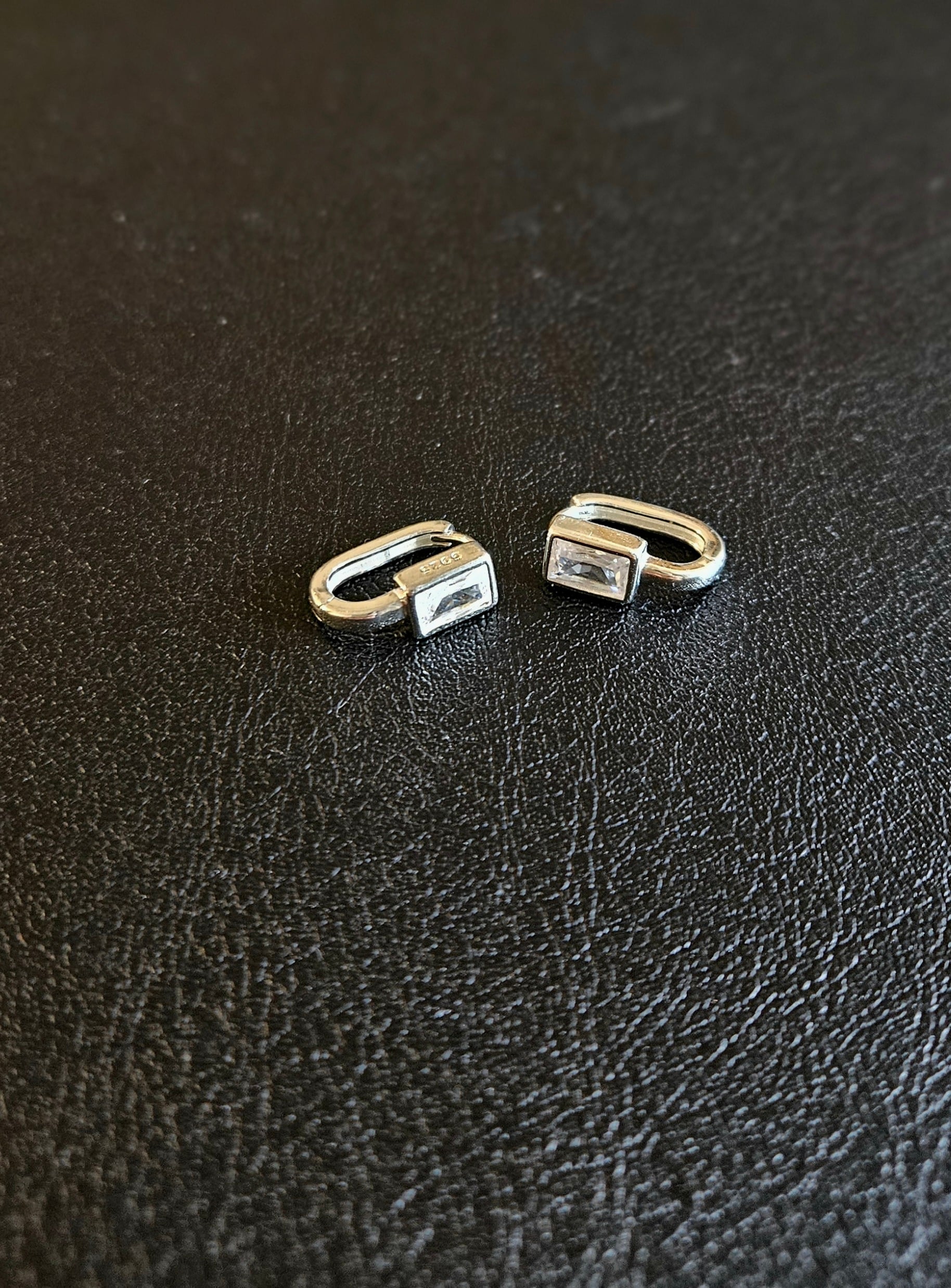 耳環中央鑲嵌一顆精巧的方形鋯石,在光線下閃耀著低調的光芒,為整體造型增添一抹亮點。 我們採用精心切割的鋯石,確保其光彩和耐用度,讓你每一次配戴都感受到它的精緻。