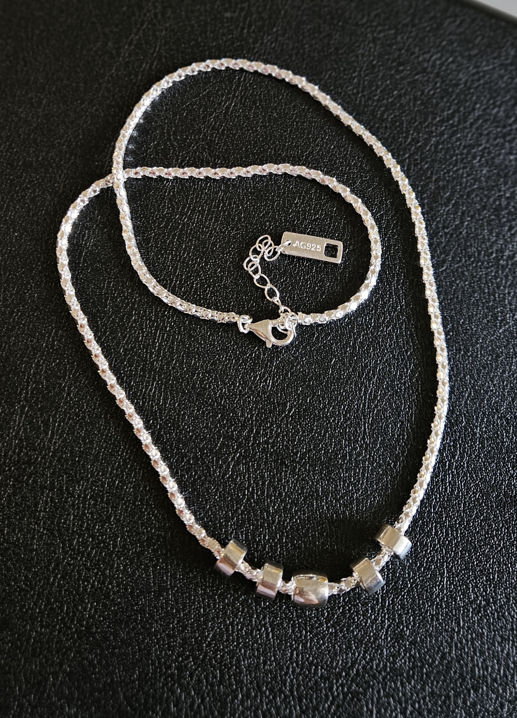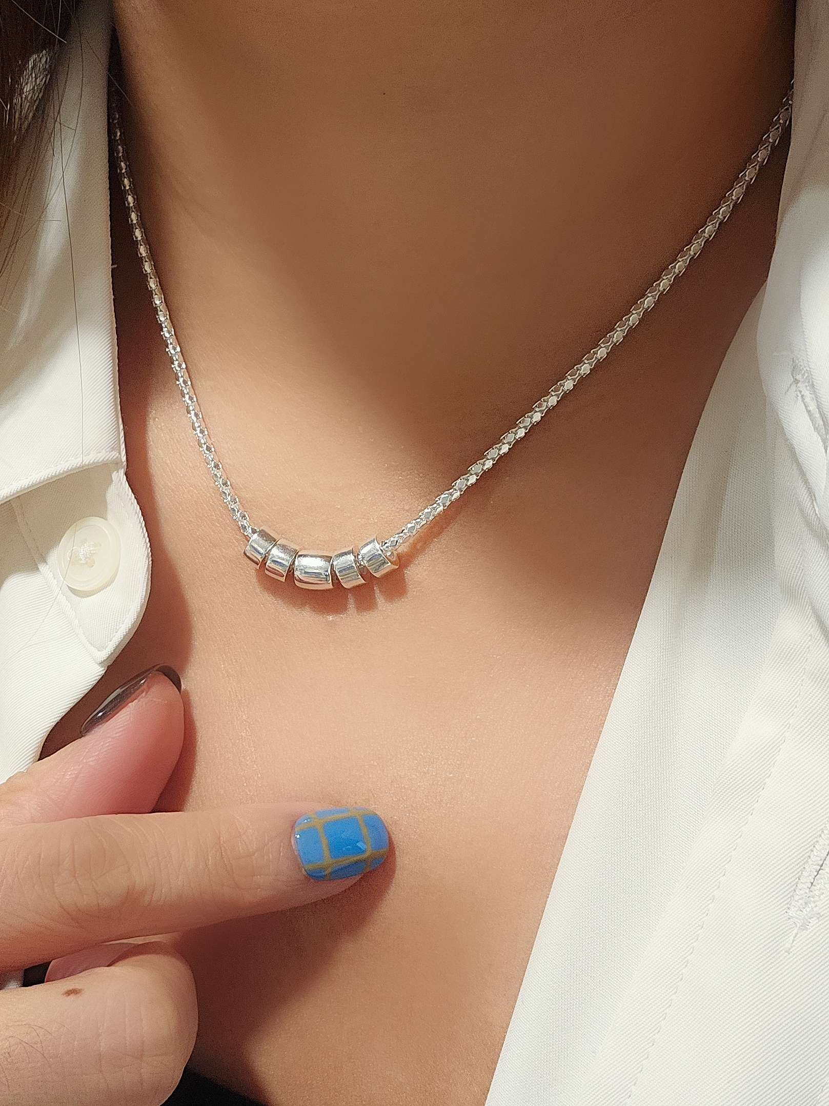 這款純銀項鍊絕對是為你的造型增添亮點的秘密武器!想像一下,當陽光灑在你的脖子上,這條項鍊的閃爍光芒與你的笑容交相輝映,讓你成為人群中最耀眼的存在。 這不是一條普通的項鍊,而是一件藝術品,巧妙地融合了現代設計和精緻工藝。項鍊的主體採用立體蛇鍊設計,每一節都經過精細拋光,呈現出流暢而優雅的線條。蛇鍊本身就已經足夠吸睛,但設計師更加入了五個可活動的圓環,讓項鍊在你的每一次移動中都充滿了生機與活力。 Necklace SIZE: 41+5cm WEIGHT: 8.7g 🔸️S925 🔸️can be stacked with necklace 🔸️Hypoallergenic 🔸️Keep Dry For Lasting Shine 〰️What's Included〰️ 1 Necklace 1 High Quality Sealed Bag 1 High Quality Silver Polishing Cloth ♥️ 尺寸: 41+5cm 重量: 8.7g 🔸️S925 🔸️可與其他項鍊疊戴營造層次感 🔸️防敏感 🔸️保持乾燥 持久光澤 〰️包括什麼〰️ 1 項鍊 1 高質密封袋 1 高質抹銀布