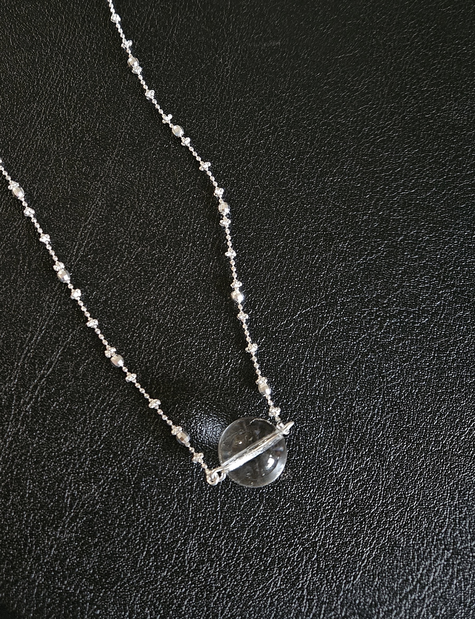 我們精選優質純銀打造項鍊,確保配戴的舒適度與耐用性。珠珠鍊身的設計,讓項鍊更加靈動活潑,擺脫了傳統項鍊的沉悶感。而最吸引人的莫過於那顆閃耀的白水晶了!它散發著純淨而神秘的光芒,為妳增添一絲優雅氣質。