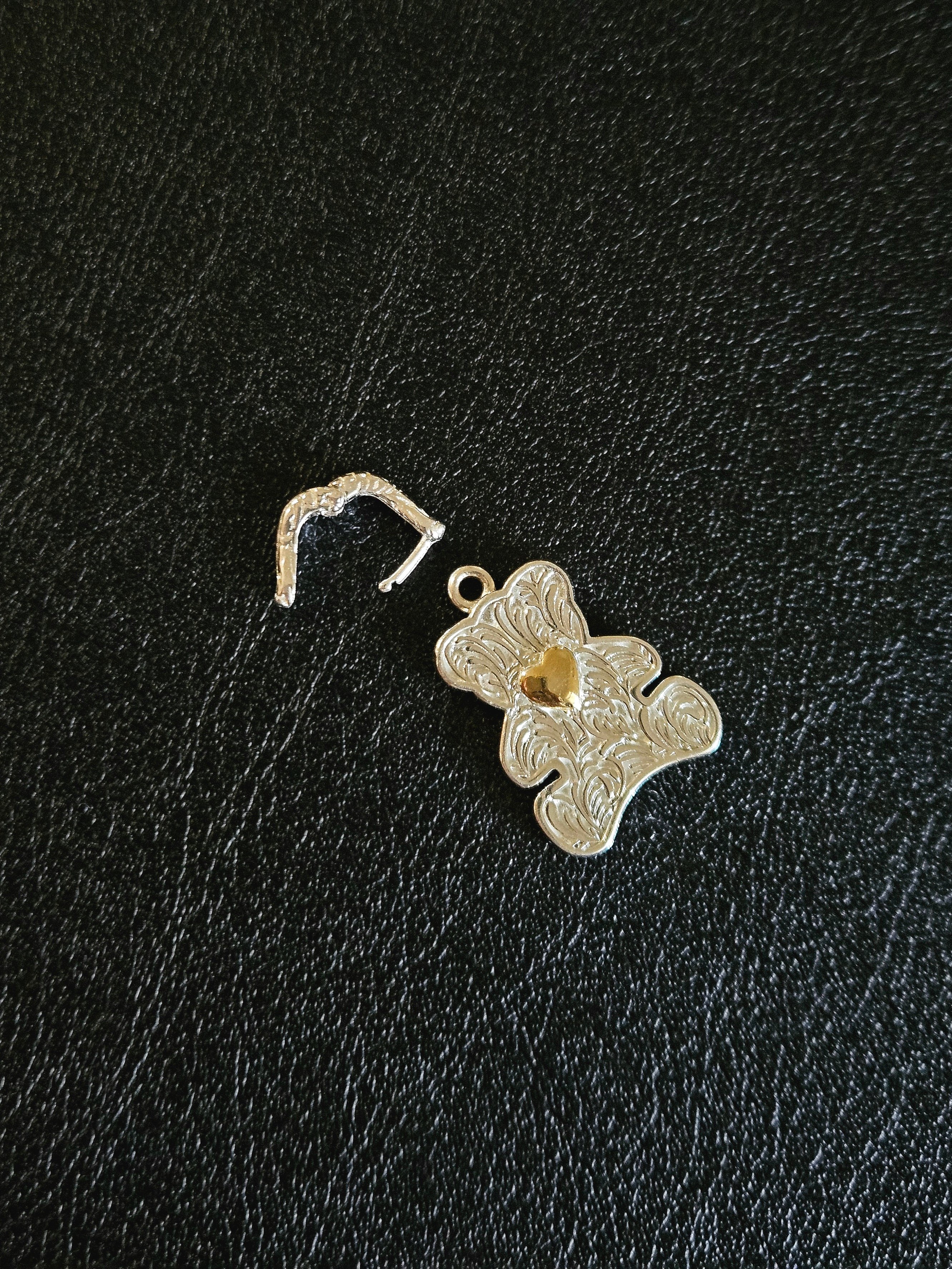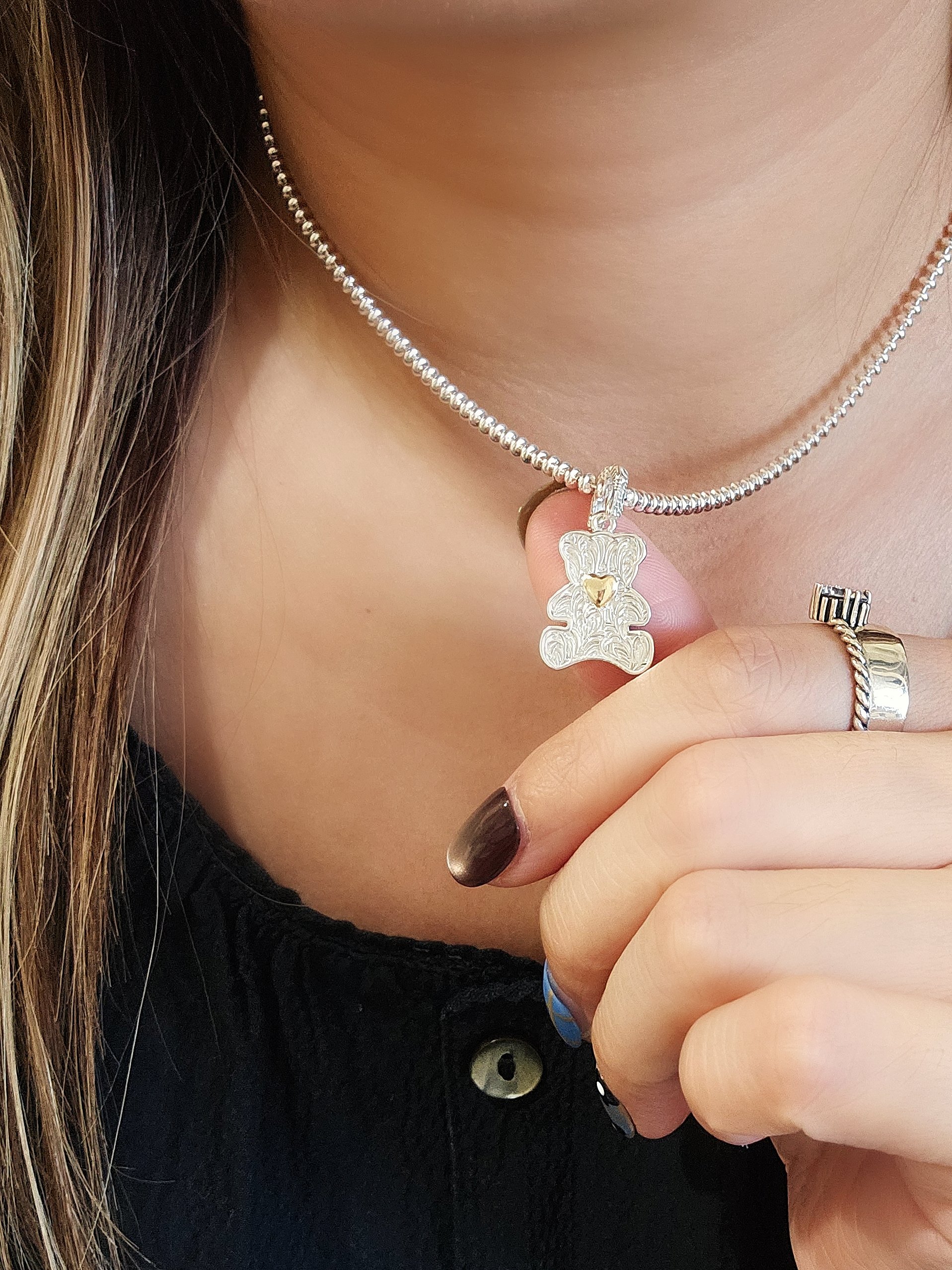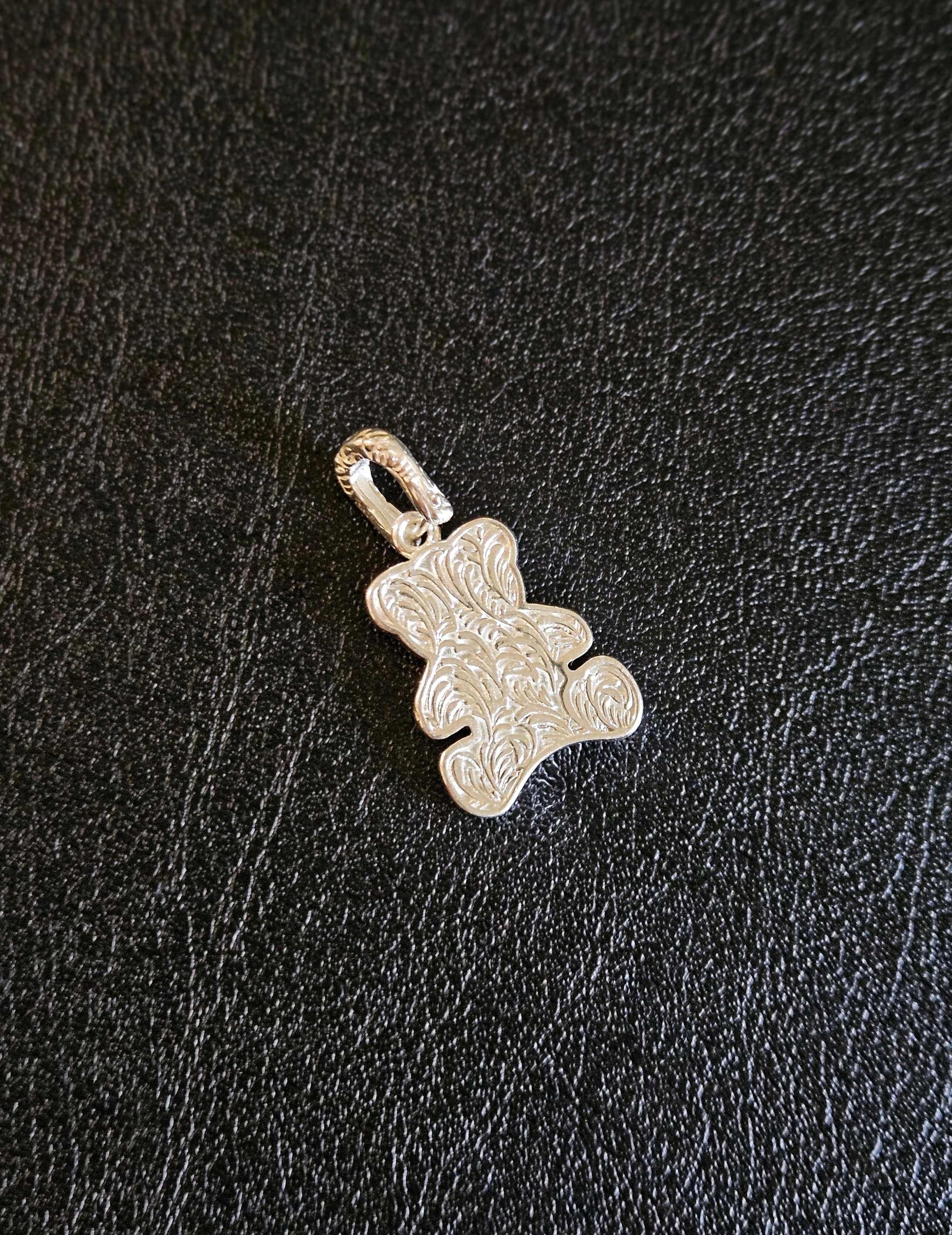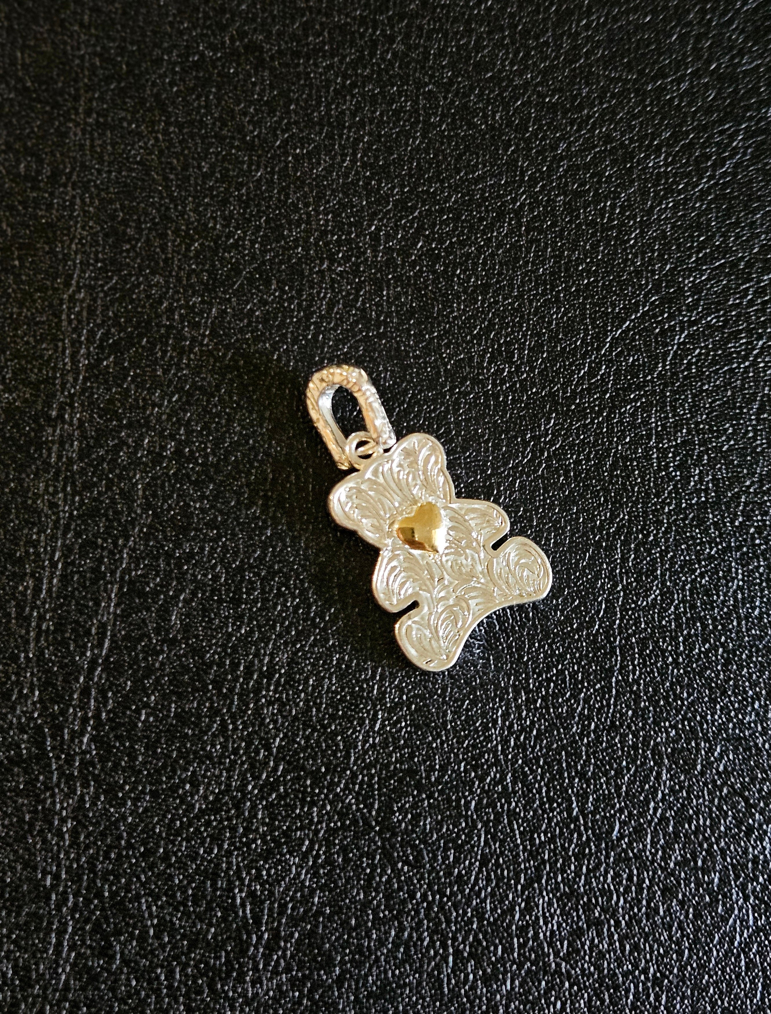 這款純銀泰迪熊吊墜設計精緻,心口處擁有金色小心形,增添了一絲溫暖和愛意。吊墜上有細緻的雕紋,展現出高超的工藝水準。可打開的扣位設計,方便將吊墜輕鬆連接到項鍊上。無論是自用還是送禮,都能給人留下深刻印象。 Pendant SIZE: 18x14mm WEIGHT: 4.2g 🔸️S925 🔸️Removeable 🔸️Hypoallergenic 🔸️Keep Dry For Lasting Shine 〰️What's Included〰️ 1 Pendant 1 High Quality Sealed Bag 1 High Quality Silver Polishing Cloth ♥️ 尺寸: 18x14mm 重量: 4.2g 🔸️S925 🔸️可拆卸的 🔸️防敏感 🔸️保持乾燥 持久光澤 〰️包括什麼〰️ 1 吊墜 1 高質密封袋 1 高質抹銀布