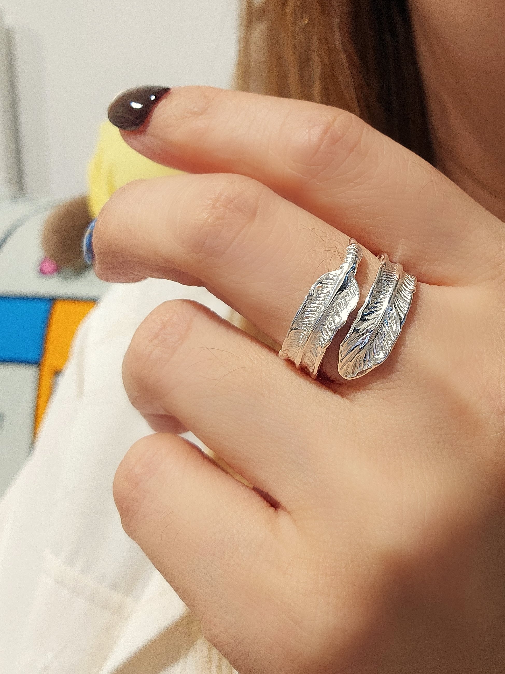 這款戒指採用高品質的純銀手工打造而成,閃耀著迷人的光澤。精巧的羽毛造型栩栩如生,每一根羽毛都經過細緻的雕琢,呈現出令人驚嘆的細節和層次感。您甚至可以感受到工匠在打造時注入的用心和熱情,每一處細節都體現了精湛的工藝。 開口設計讓您能輕鬆調整戒指的尺寸,確保舒適的佩戴體驗。不論您是單獨佩戴,或是與其他戒指疊戴,都能創造出屬於您的獨特風格。想像一下,在陽光下,戒指反射出柔和的光芒,讓您的手指增添一抹精緻的光彩。 Ring SIZE: 17mm WEIGHT: 4.8g 🔸️S925 🔸️Adjustable size 🔸️Hypoallergenic 🔸️Keep Dry For Lasting Shine 〰️What's Included〰️ 1 Ring 1 High Quality Sealed Bag 1 High Quality Silver Polishing Cloth ♥️ 尺寸: 17mm 重量: 4.8g 🔸️S925 🔸️可調整尺寸 🔸️防敏感 🔸️保持乾燥 持久光澤 〰️包括什麼〰️ 1 戒指 1 高質密封袋 1 高質抹銀布