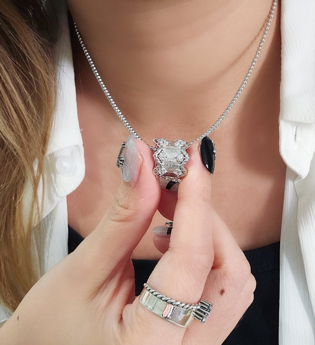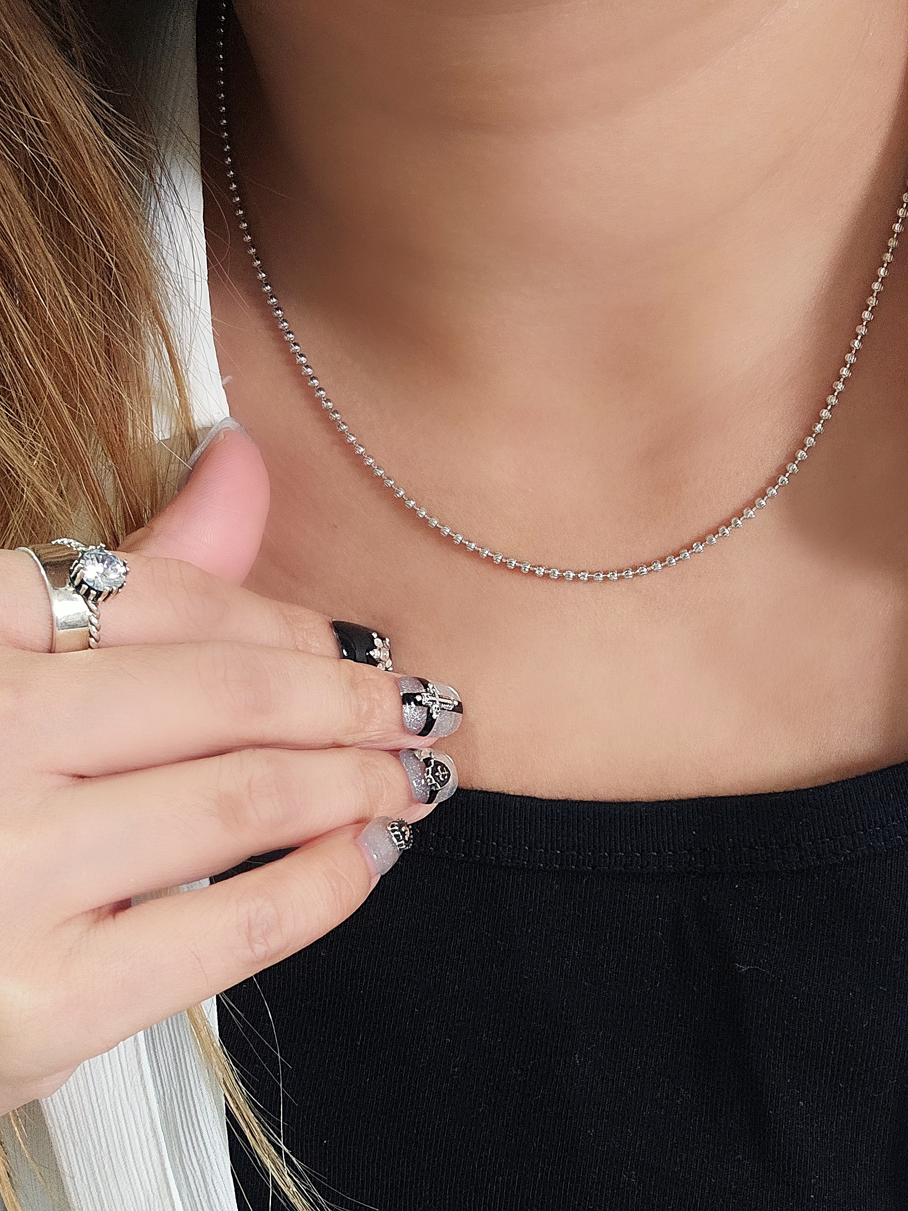 最新超值套裝😊 純銀鍍鉑金組合: 項鍊x1 + 吊咀x2 可轉換不同吊咀增添新鮮感😊 這款純銀鍍鉑金項鍊,長度45cm,每一粒圓珠上都有車花工藝,閃耀璀璨。無論是搭配大領衫、恤衫還是V領,都能輕鬆展現你的優雅與魅力。這款項鍊不僅適合日常工作配搭,更是任何場合的理想之選。可以搭配另一款純銀鍍鉑金吊飾,簡單高貴,更顯氣質。 Necklace SIZE: 45cm WEIGHT: 5g 🔸️S925 🔸️can be stacked with necklace 🔸️Hypoallergenic 🔸️Keep Dry For Lasting Shine 〰️What's Included〰️ 1 Necklace 2 Pendant 1 High Quality Sealed Bag 1 High Quality Silver Polishing Cloth ♥️ 尺寸: 45cm 重量: 5g 🔸️S925 🔸️可與其他項鍊疊戴營造層次感 🔸️防敏感 🔸️保持乾燥 持久光澤 〰️包括什麼〰️ 1 項鍊 2咀咀 1 高質密封袋 1 高質抹銀布